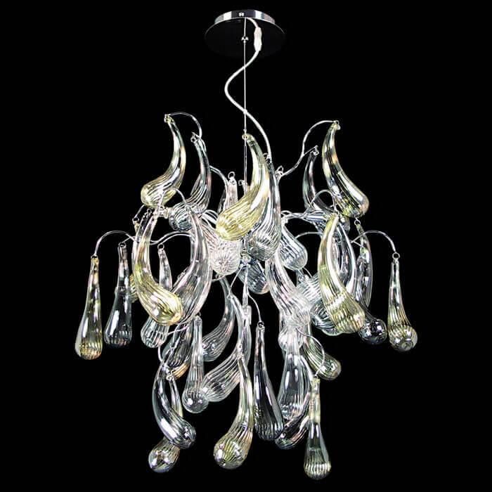 Цвет плафона и абажура - прозрачный, что позволяет свету равномерно распространяться по комнате, создавая уютную атмосферу. Цвет основания - хром, что отлично сочетается с общим стилем люстры. Степень защиты IP20 гарантирует безопасность использования изделия.
