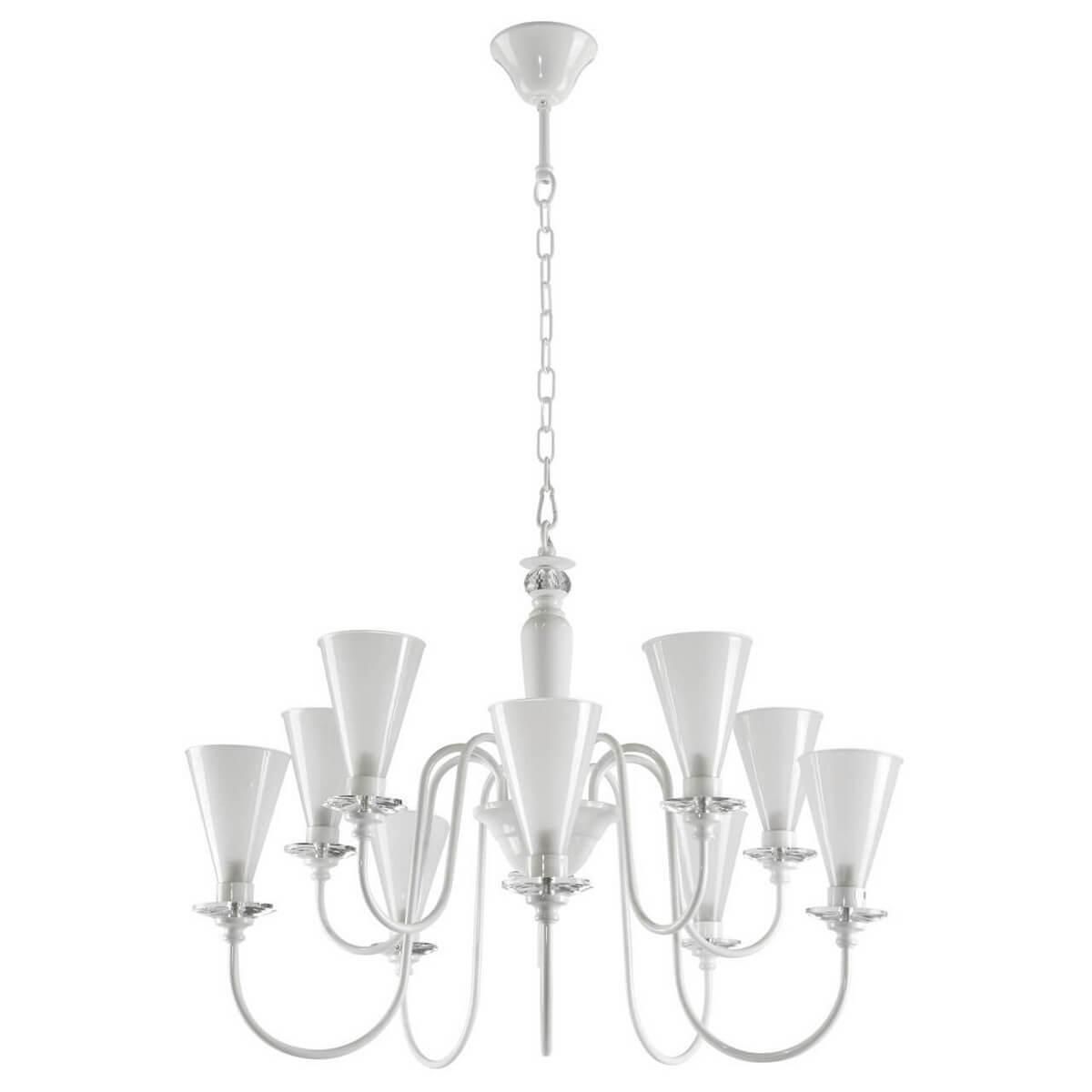 В комплекте с люстрой идут 10 галогеновых ламп с цоколем E14 и общей мощностью 400 Вт. Напряжение, необходимое для работы, составляет 220-240 В. Степень защиты IP20 гарантирует безопасность использования внутри помещения.