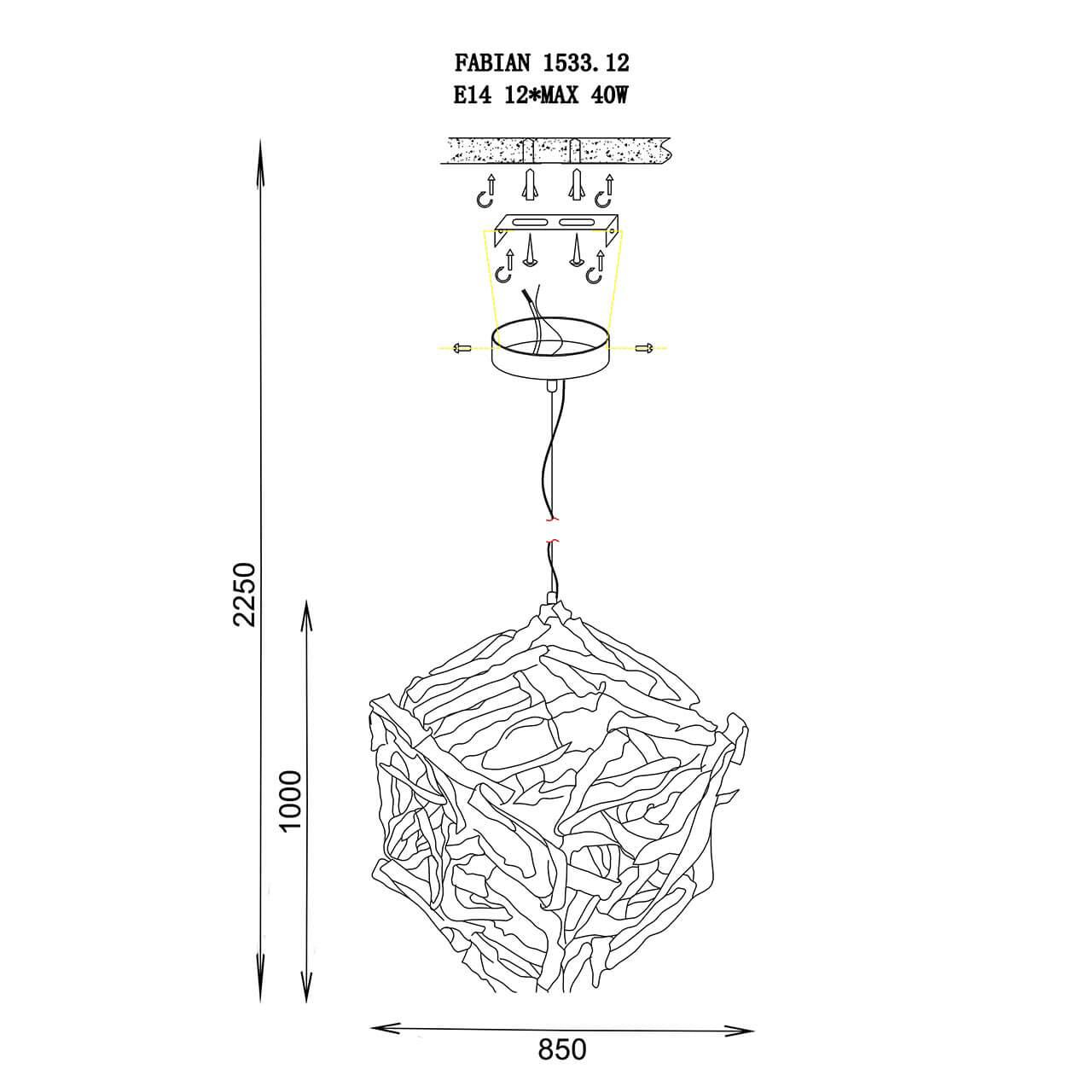 Подвесная люстра Lucia Tucci Fabian 1533.12 Argento - это изысканное итальянское изделие из коллекции Angelo, созданное для использования в гостиной. Она отличается стильным дизайном в современном стиле, который подчеркнет элегантность интерьера.Эта люстра имеет 12 плафонов из металла в форме квадрата, окрашенных в серебристый цвет. Основание также выполнено из металла и имеет серебристую отделку. Диаметр люстры составляет 850 мм, а высота - 1000 мм. Каждая лампа имеет цоколь E14 и мощность 40 Вт, что обеспечивает общую мощность в 480 Вт.