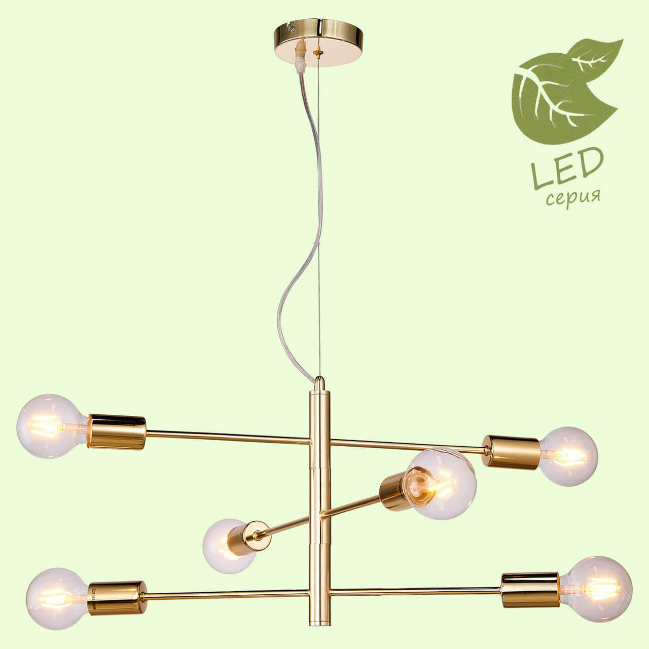 Люстра оснащена шестью цоколями E27, предназначенными для установки светодиодных ламп. Общая мощность составляет 60 Вт, что обеспечивает достаточное освещение помещения. Высота люстры составляет 310 мм, диаметр - 590 мм.