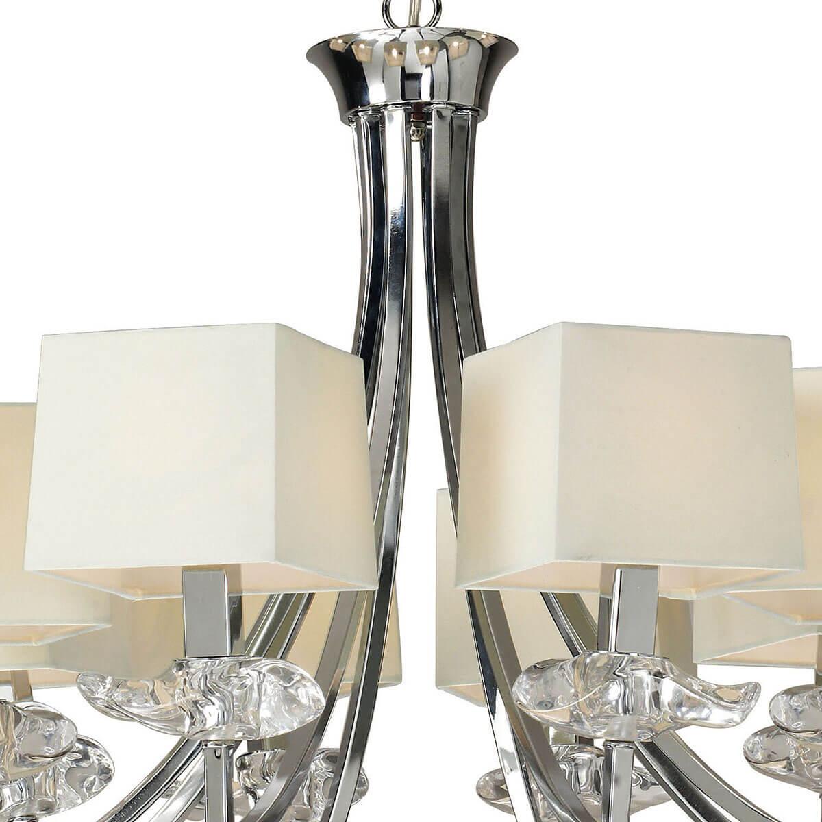 Люстра оснащена 8 энергосберегающими лампочками с цоколем E14 и общей мощностью 160 Вт. Напряжение 220 В обеспечивает стабильное и яркое освещение. Степень защиты IP20 гарантирует безопасность использования внутри помещения.
