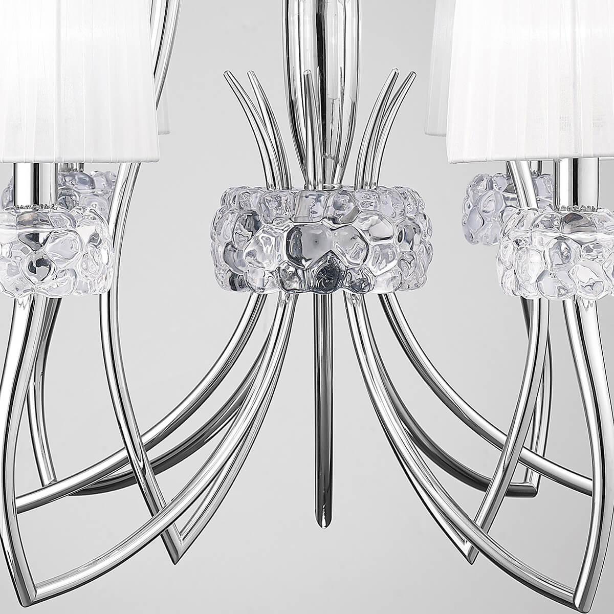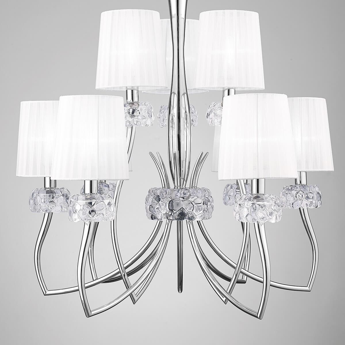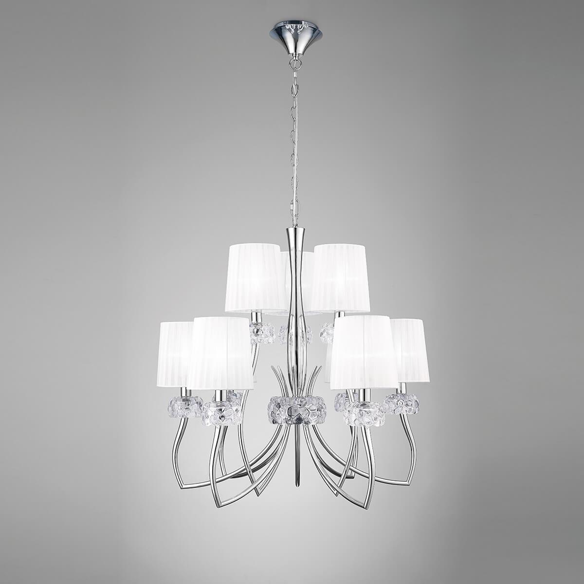 Подвесная люстра Mantra Loewe 4630 - это изысканное и функциональное освещение для гостиной, созданное испанским брендом Mantra. Эта модель из коллекции Loewe отличается стильным дизайном и высоким качеством исполнения.Люстра имеет 9 плафонов из органзы, которые создают мягкий и приятный свет. Диаметр плафона составляет 750 мм, а высота - 2380 мм. Основание выполнено из металла с отделкой под хром, что придает изделию современный вид.