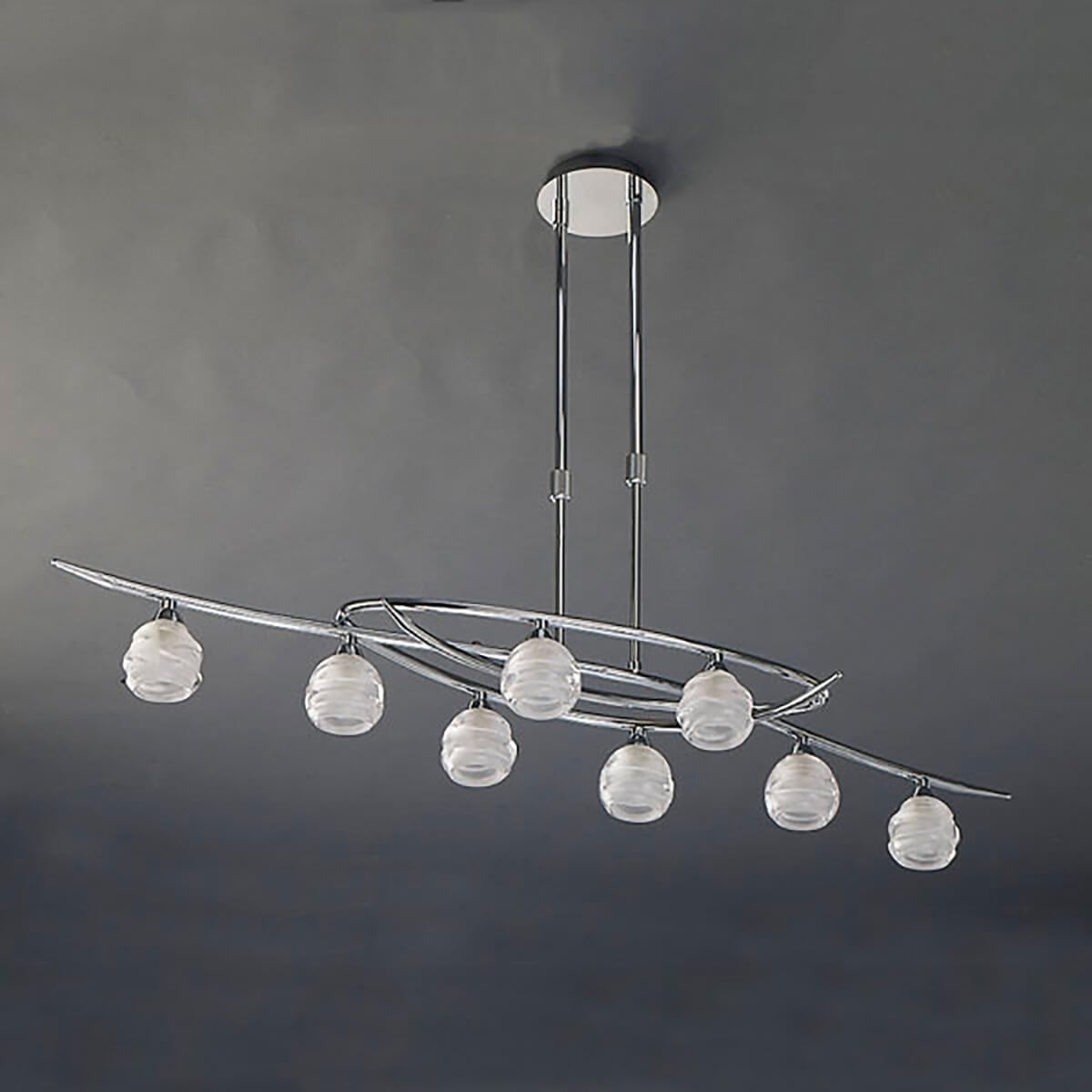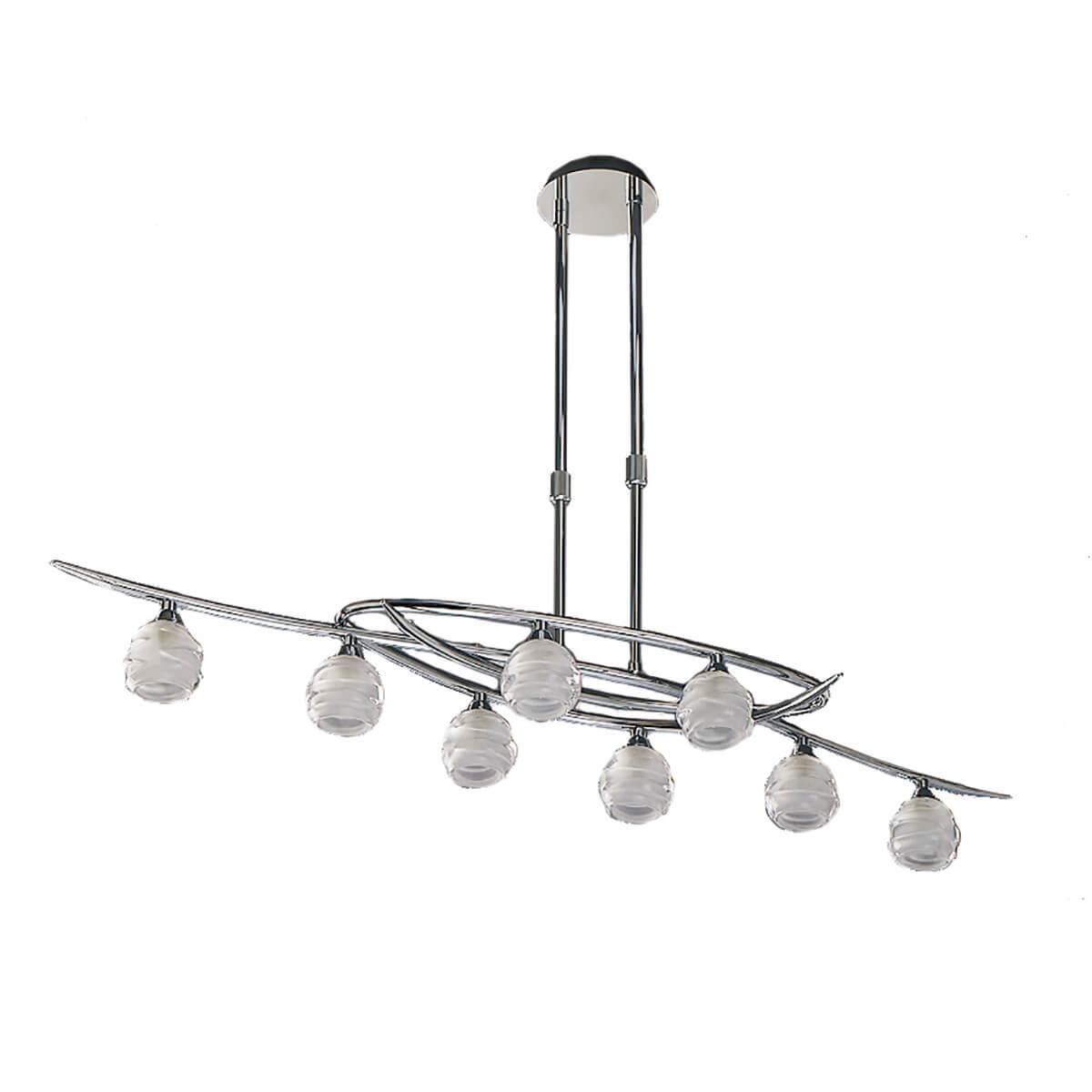 Подвесная люстра Mantra Loop Chrome 1800 - это изысканное и функциональное освещение для гостиной, созданное испанским брендом Mantra. Эта модель из коллекции Loop отличается стильным дизайном и высоким качеством исполнения.Люстра оснащена восемью светодиодными лампами с цоколем G9, общая мощность которых составляет 40 Вт. Материал плафона и абажура - стекло, что придает изделию изысканный и элегантный вид. Диаметр плафона - круглый, цвет белый, что позволяет лампе легко вписаться в любой интерьер.