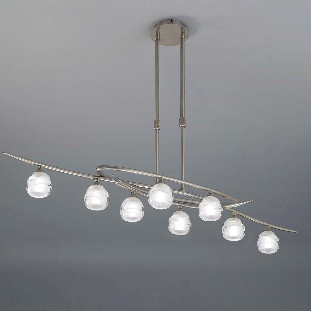Эта подвесная люстра оснащена 8 светодиодными лампами с цоколем G9, общая мощность которых составляет 40 Вт. Напряжение работы от 220 до 240 В, а степень защиты IP20 гарантирует безопасность использования внутри помещения. Высота люстры составляет 700 мм, что позволяет создать впечатляющий световой акцент в интерьере.
