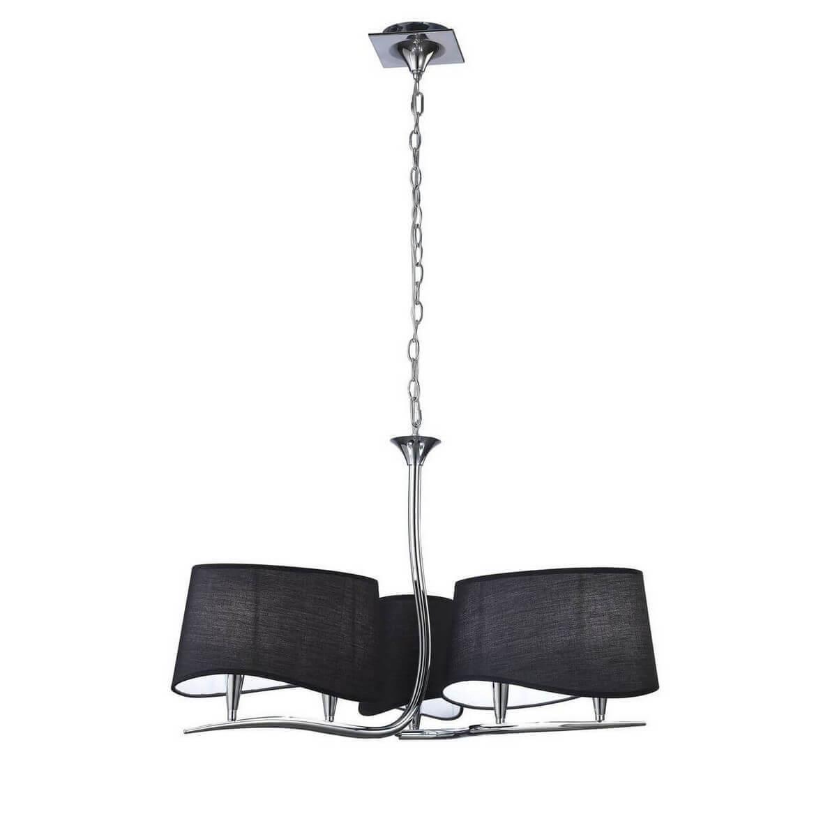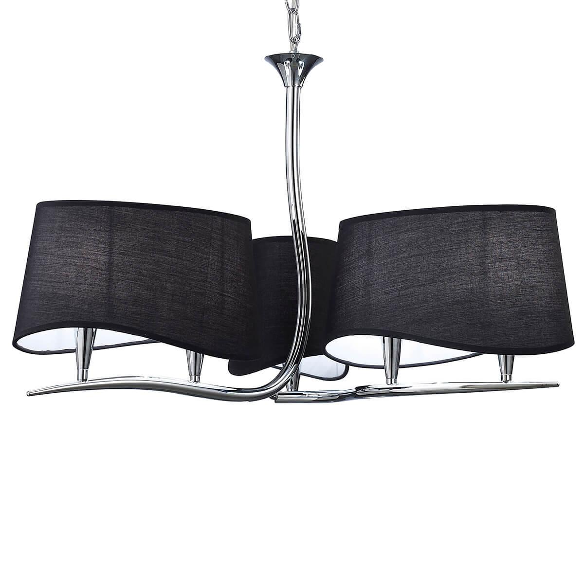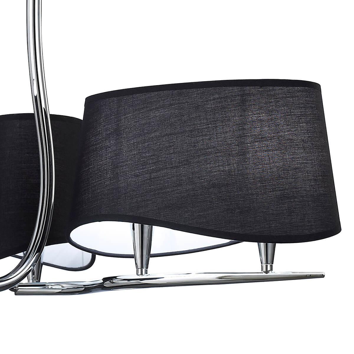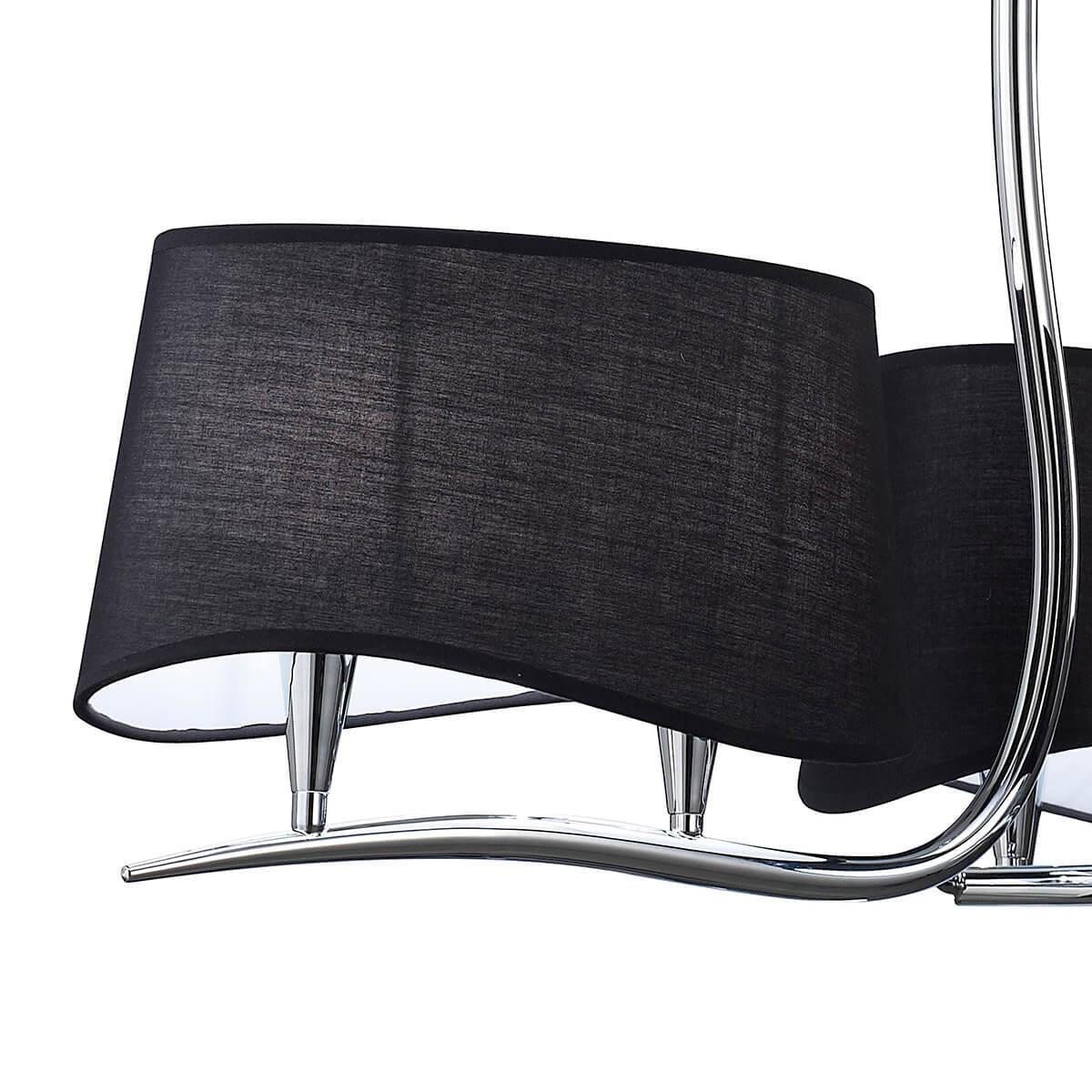 Плафон и абажур изготовлены из черного текстиля, что придает люстре изысканный вид. Основание выполнено из металла с хромированным покрытием, что придает ему долговечность и стойкость к внешним воздействиям.