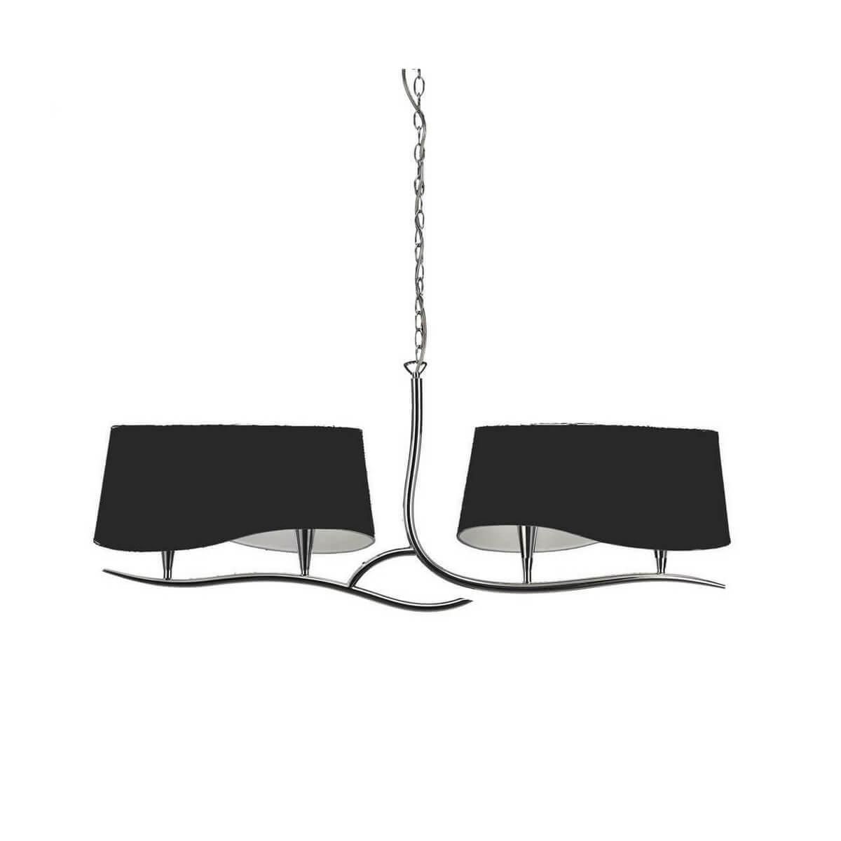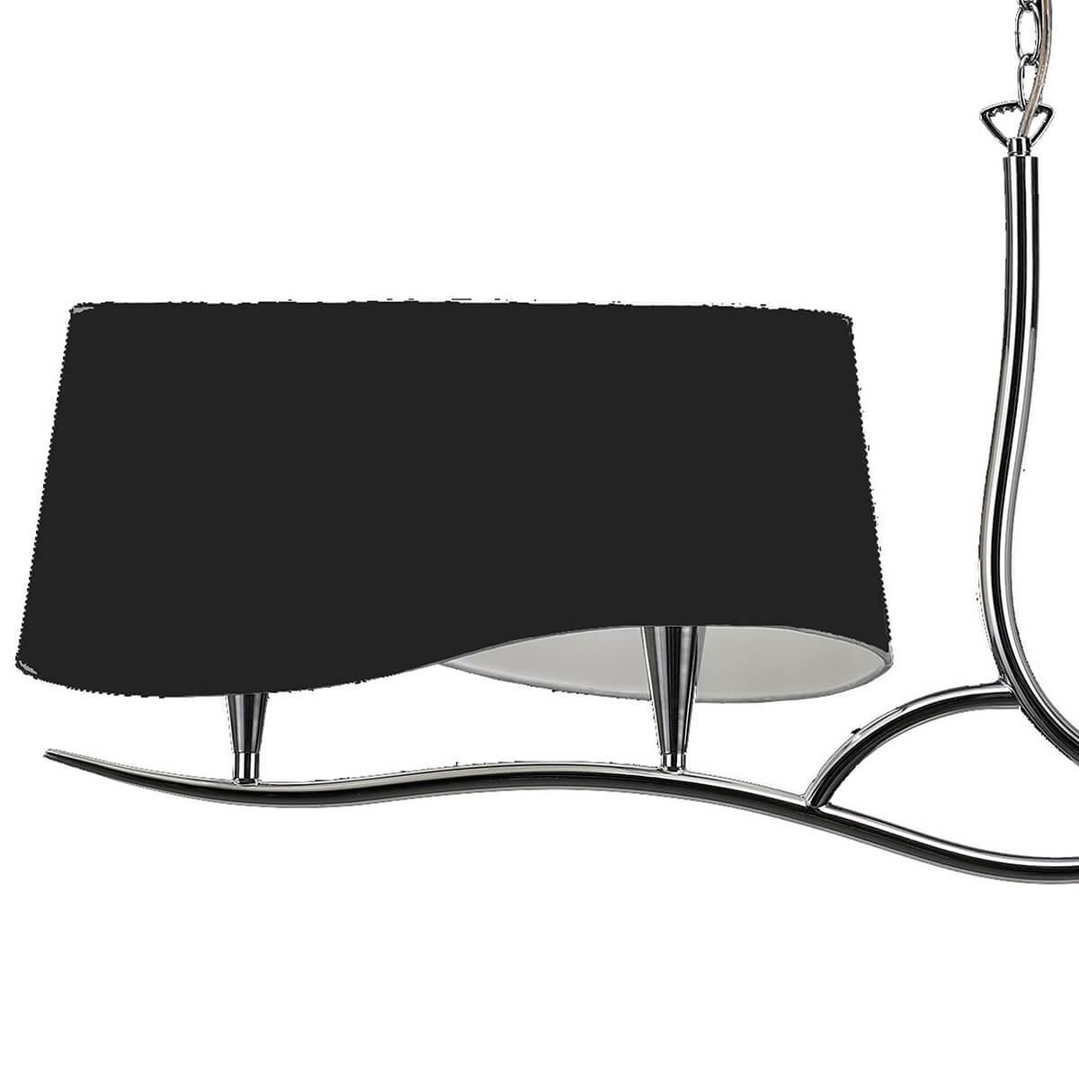 Плафон и абажур изготовлены из ткани черного цвета, что придает люстре изысканный вид. Основание выполнено из металла с хромированным покрытием, что придает ему долговечность и стойкость к внешним воздействиям. Степень защиты IP20 гарантирует безопасность использования люстры в помещениях.
