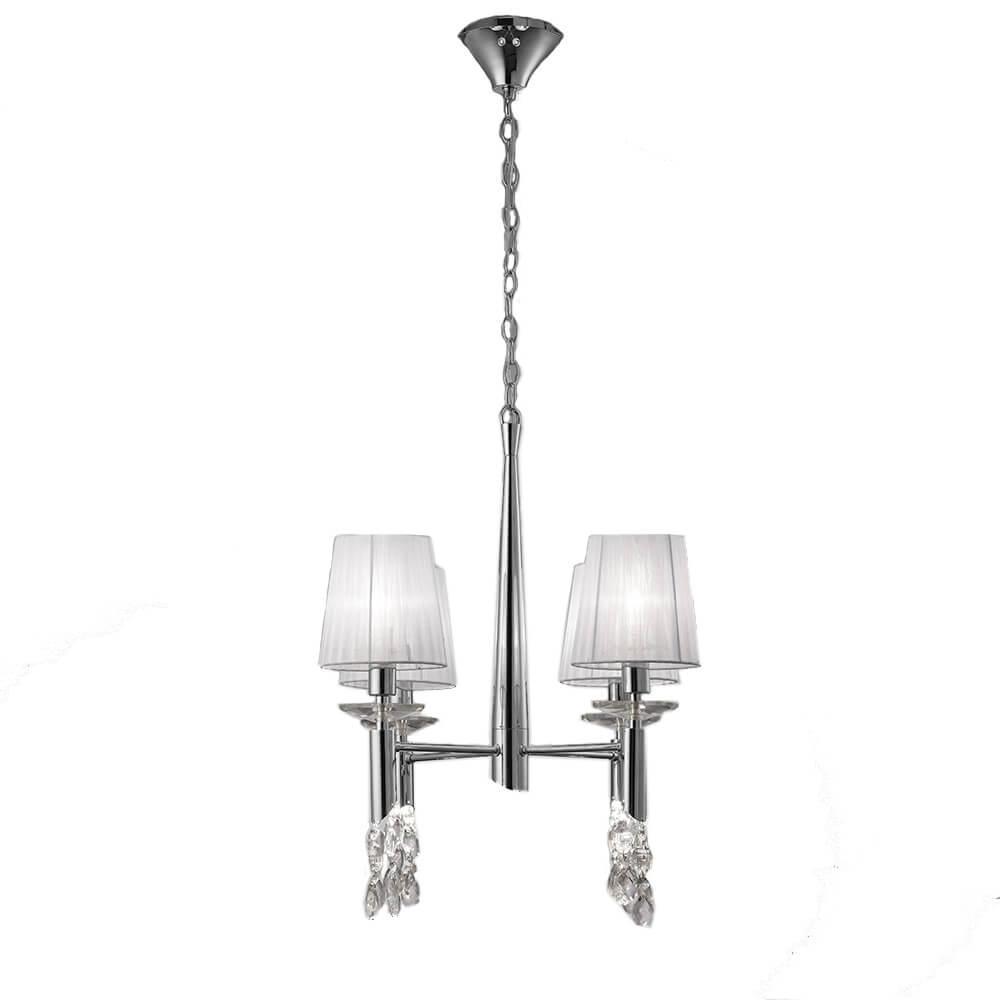 Подвесная люстра Mantra Tiffany 3852 - это изысканное и стильное освещение для гостиной, которое привнесет в интерьер нотку изысканности и элегантности. Бренд Mantra известен своим высоким качеством и оригинальным дизайном, поэтому покупая продукцию этого производителя, вы можете быть уверены в надежности и долговечности товара.Люстра из коллекции Tiffany имеет 8 плафонов из органзы, которые создают мягкий и приятный свет. Диаметр плафона составляет 550 мм, а высота подвеса - 1600 мм, что позволяет равномерно осветить большое помещение. Основание выполнено из металла с отделкой под хром, что придает изделию современный и стильный вид.