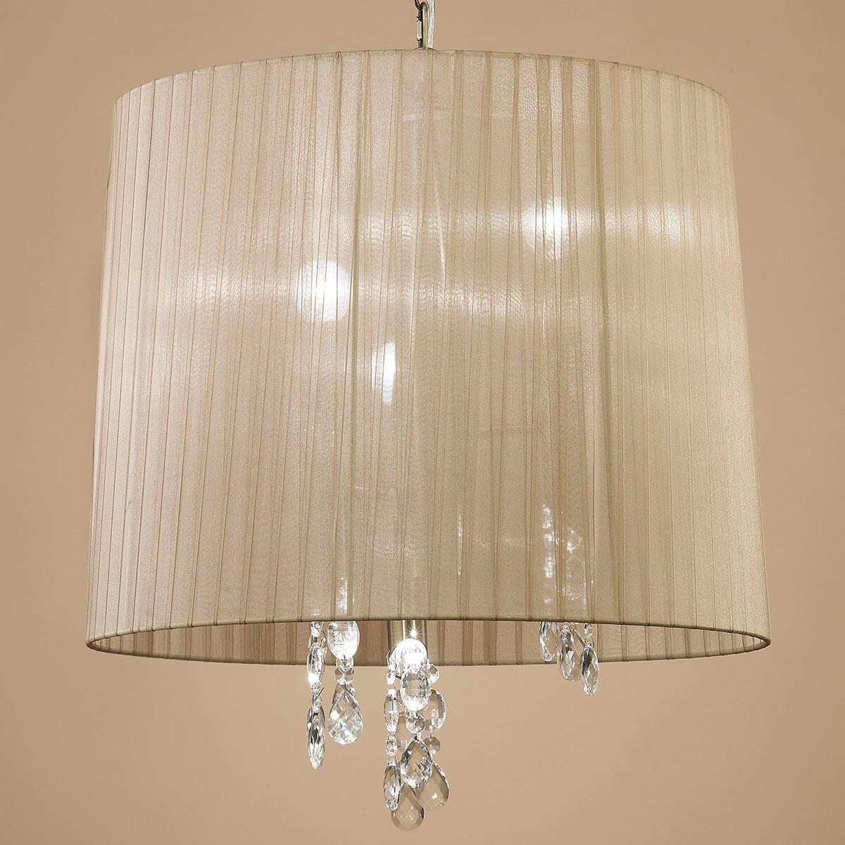 Подвесная люстра Mantra Tiffany Bronze 3880 - это изысканное и стильное освещение для гостиной, которое привнесет в интерьер нотку изысканности и элегантности. Бренд Mantra из Испании предлагает эту подвесную люстру с артикулом 3880, входящую в коллекцию Tiffany.Люстра имеет шесть цоколей E27, что позволяет использовать энергосберегающие лампочки мощностью до 20 Вт каждая. Общая мощность составляет 75 Вт. Высота подвесной люстры составляет 1560 мм, диаметр - 500 мм. Плафон выполнен из органзы в бежевом цвете, что придает освещению мягкость и теплоту. Основание из металла имеет античное латунное покрытие, что добавляет элемент роскоши.