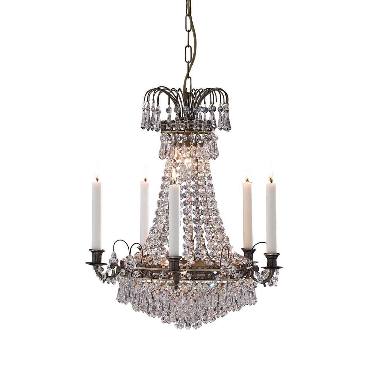 Подвесная люстра Markslojd Lacko 100642 - это изысканное освещение для спальни, которое добавит шарма и элегантности в интерьер помещения. Бренд Markslojd из Швеции представляет эту модель из коллекции Lacko, выполненную в классическом стиле.Люстра имеет шесть плафонов из хрусталя с прозрачным оттенком, которые создают красивый световой эффект в комнате. Основание из металла в бронзовом цвете дополняет общий дизайн изделия. Диаметр люстры составляет 480 мм, а высота - 580 мм, что делает ее идеальным выбором для помещений с высокими потолками.