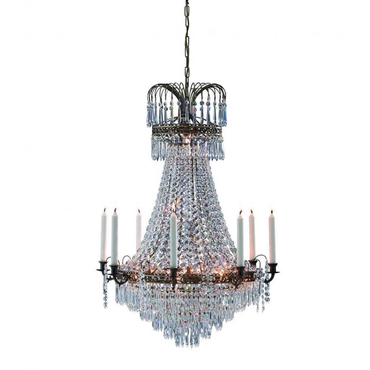 Подвесная люстра MarkSlojd Lacko 100659 - это изысканное освещение для больших залов, созданное изысканным шведским брендом Markslojd. Эта подвесная люстра из коллекции Lacko сочетает в себе классический стиль и высокое качество исполнения.Люстра имеет 9 цоколей типа E14, предназначенных для ламп накаливания мощностью 40 Вт каждая. Общая мощность составляет 360 Вт, обеспечивая достаточное освещение помещения. Высота подвесной люстры составляет 890 мм, диаметр - 660 мм. Основание изготовлено из металла с золотистым оттенком, а плафоны выполнены из хрустального материала, придающего изделию особую изысканность.