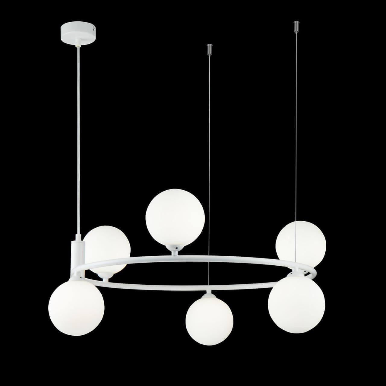 Подвесная люстра Maytoni Ring MOD013PL-06W - это элегантное и стильное освещение для кухни, которое добавит уют и изысканность в интерьер.Эта подвесная люстра из коллекции Ring от известного бренда Maytoni имеет шесть энергосберегающих лампочек с цоколем G9 и общей мощностью 150 Вт. Высота люстры составляет 280 мм, диаметр - 580 мм. Плафон и абажур выполнены из прочного стекла, а основание из металла, окрашенного в белый цвет.