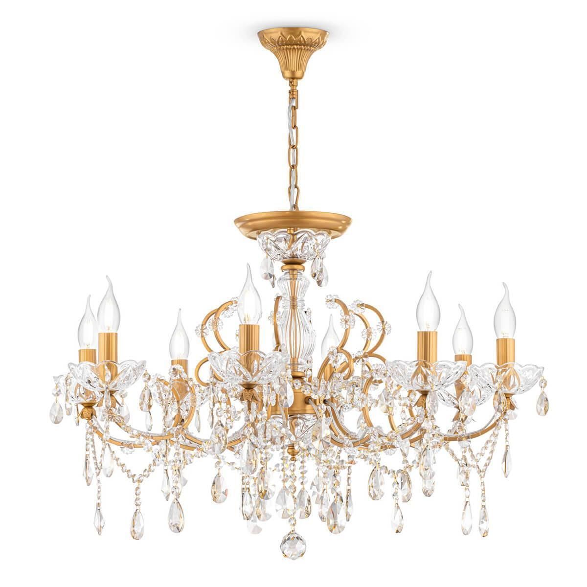 Подвесная люстра Maytoni Sevilla DIA004-08-G - это изысканное и элегантное освещение для гостиной в классическом стиле. Произведена в Германии, она отличается высоким качеством и надежностью.Люстра оснащена восемью лампочками с цоколем E14 и общей мощностью 480 Вт, что обеспечивает достаточное освещение помещения. Материал плафона и абажура - хрусталь, что добавляет изысканности и блеска. Основание из металла выполнено в золотистом цвете, что придает изделию роскошный вид.