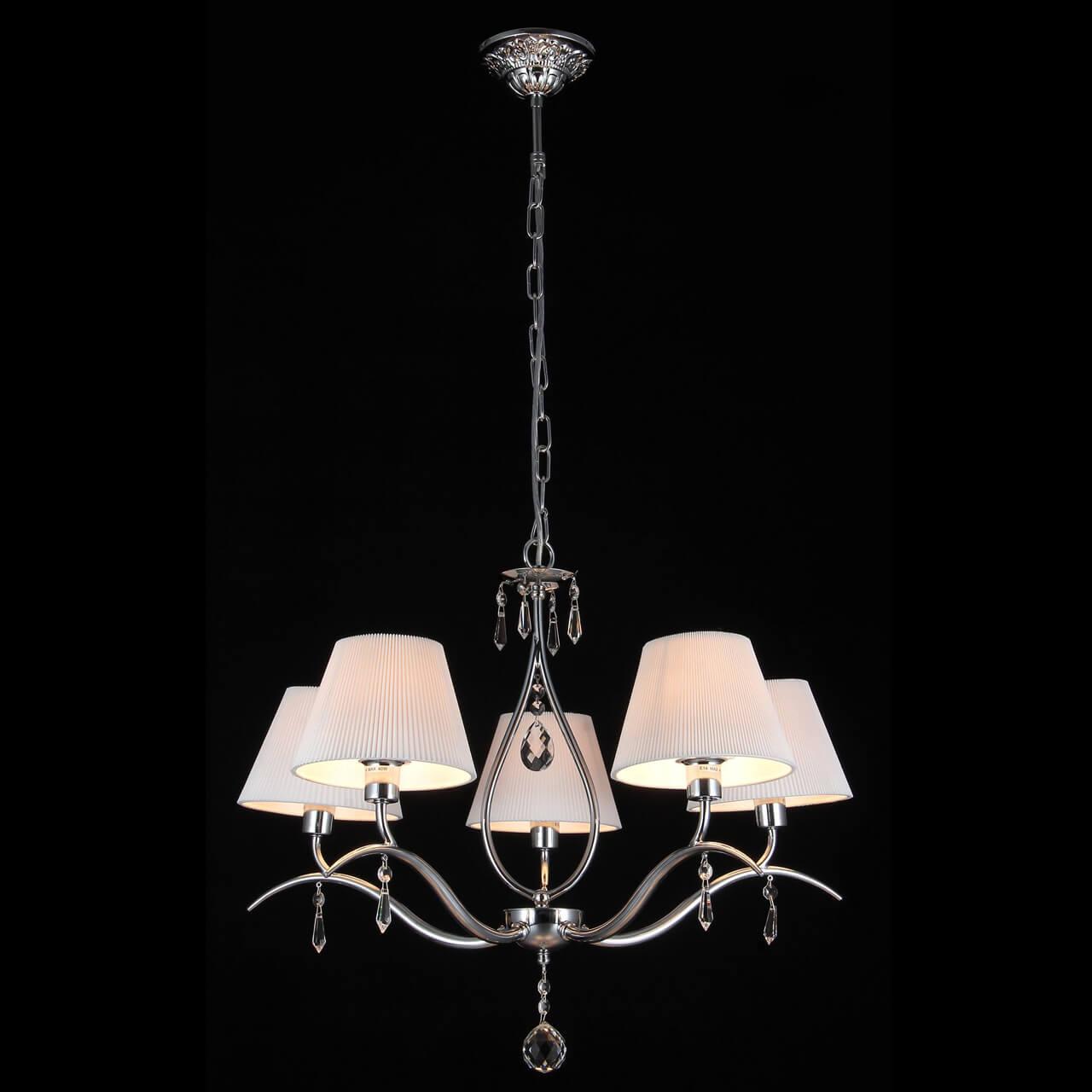 Подвесная люстра Maytoni Talia MOD334-PL-05-N - это изысканное освещение для спальни в стиле арт-деко от немецкого бренда Maytoni. Люстра имеет пять цоколей E14, предназначенных для ламп накаливания мощностью до 40 Вт каждая. Общая мощность светильника составляет 200 Вт.Плафон и абажур изготовлены из ткани белого цвета, что придает люстре элегантный и изысканный вид. Диаметр плафона составляет 620 мм, а высота - 500 мм. Основание выполнено из металла с отделкой под хром, что придает конструкции прочность и долговечность.