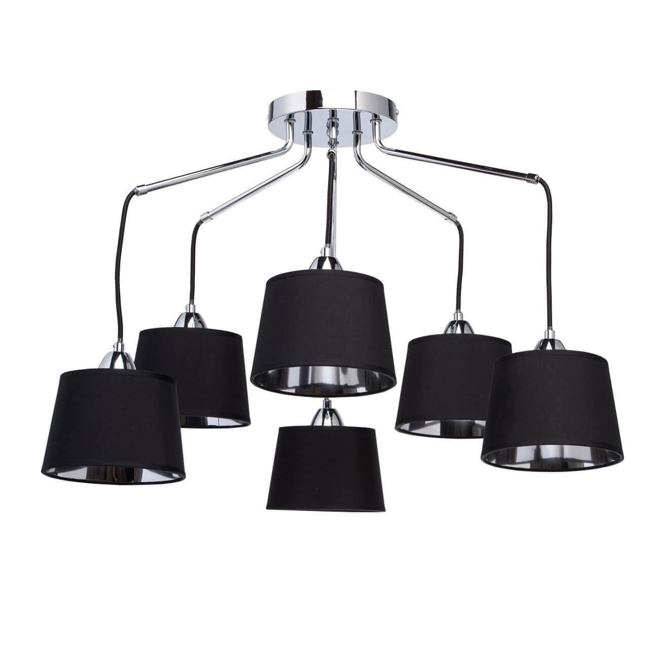 Подвесная люстра MW-Light Лацио 4 103011206 - это элегантное и стильное освещение для спальни, которое привнесет в интерьер нотку хай-тека. Произведенная в Германии, данная люстра отличается высоким качеством и надежностью.Люстра имеет шесть цоколей E27, что позволяет использовать лампочки мощностью до 40 Вт каждая. Общая мощность составляет 240 Вт. Плафон и абажур изготовлены из ткани черного цвета, что придает освещению изысканный вид. Основание выполнено из металла с хромированным покрытием.