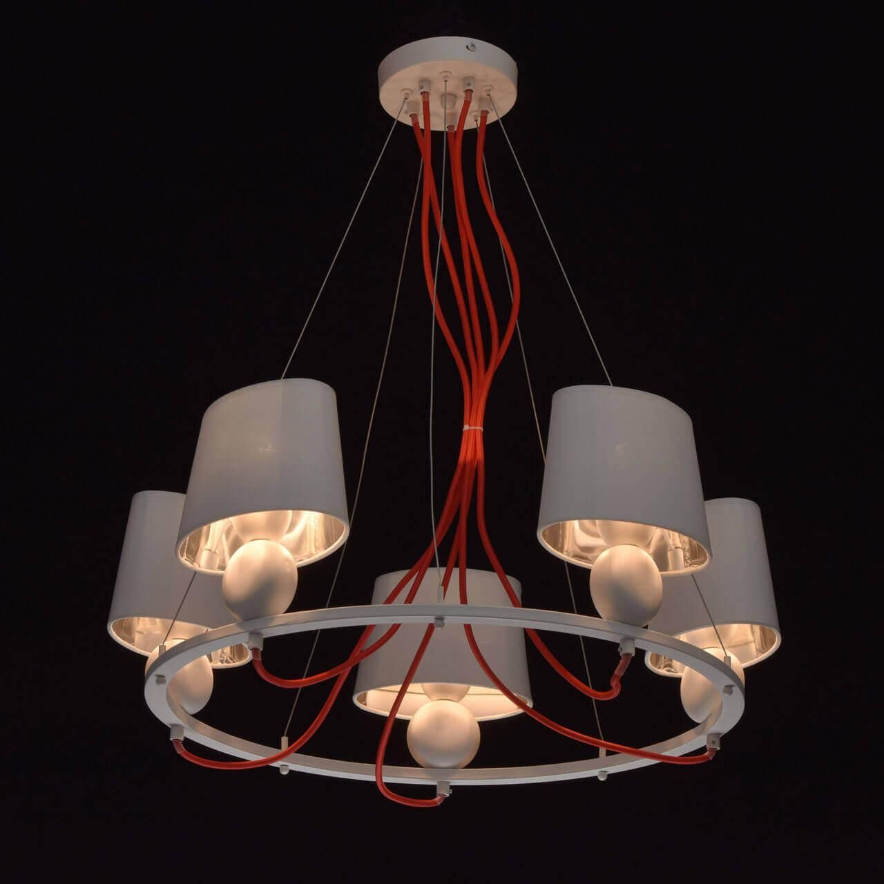 Цветовое решение люстры MW-Light Лацио 5 103011505 - белый, что придает ей особую изящность и легкость. Форма плафона конусная, что создает интересный световой эффект в помещении. Степень защиты IP20 гарантирует безопасность использования внутри помещения.