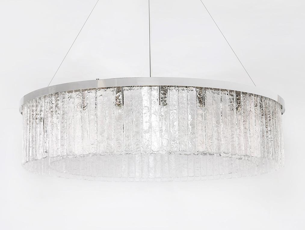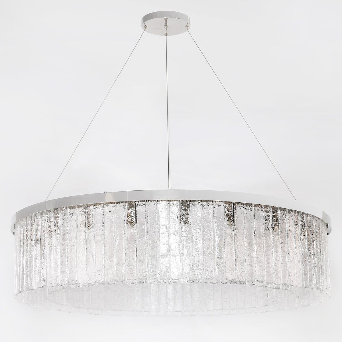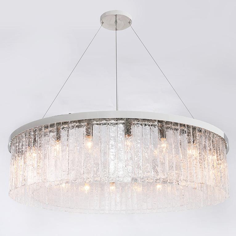 Основание люстры выполнено из металла в никелевом цвете, что отлично сочетается с хрустальными элементами. Цвет плафона и абажура прозрачный, что позволяет свету проникать свободно и создавать уютную атмосферу в помещении.