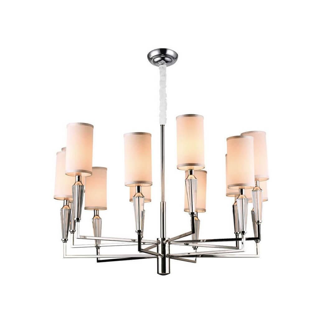 Подвесная люстра Newport 3156+6/C М0055975 - это элегантное освещение для больших залов в американском стиле. Бренд Newport из Соединенных Штатов предлагает эту коллекцию 3150, которая станет изысканным дополнением к интерьеру.Люстра имеет 12 плафонов из ткани цвета бежевого, создавая мягкое и приятное освещение. Диаметр плафона составляет 1130 мм, а высота - 760 мм. Основание из металла выполнено в никелевом цвете, что придает изделию стойкость и прочность.