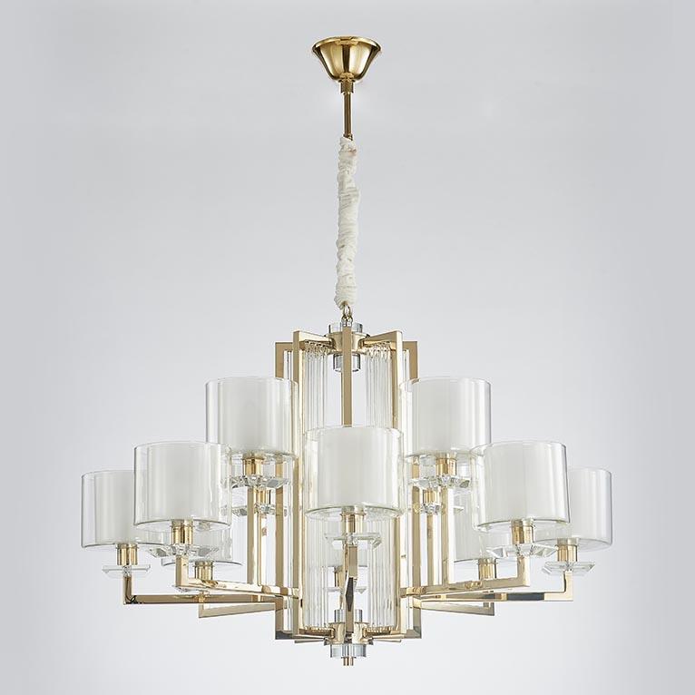 Подвесная люстра Newport 4408+4/C gold М0062634 - это изысканное освещение для больших залов, которое добавит шарма и элегантности вашему интерьеру. Бренд Newport из Соединенных Штатов предлагает эту подвесную люстру из коллекции 4400, выполненную в американском стиле.Люстра оснащена 12 лампами с цоколем E14 и общей мощностью 720 Вт. Материал плафона и абажура - стекло, а основание изготовлено из металла и окрашено в золотой цвет. Диаметр люстры составляет 910 мм, а высота - 570 мм. Плафон имеет форму цилиндра и прозрачный цвет, что придает освещению особую изысканность.