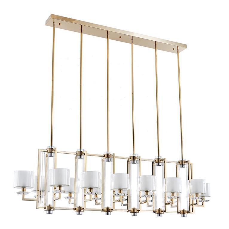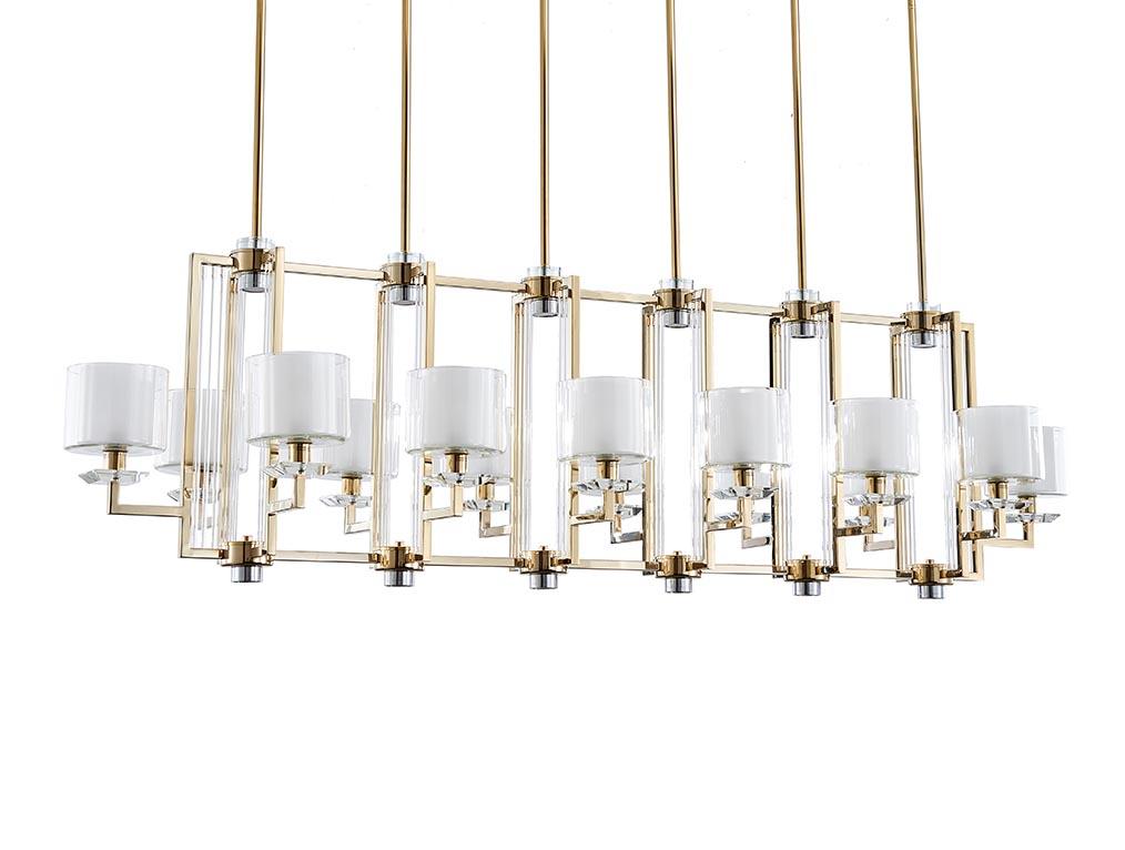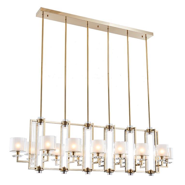 Основание люстры выполнено из металла и имеет золотистый цвет, что придает изделию роскошный вид. Высота подвесной люстры составляет 1600 мм, что позволяет ей эффектно вписаться в интерьер помещения.