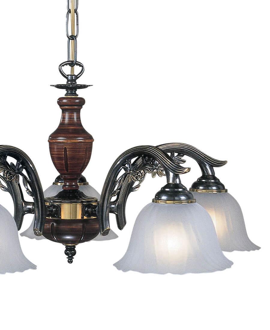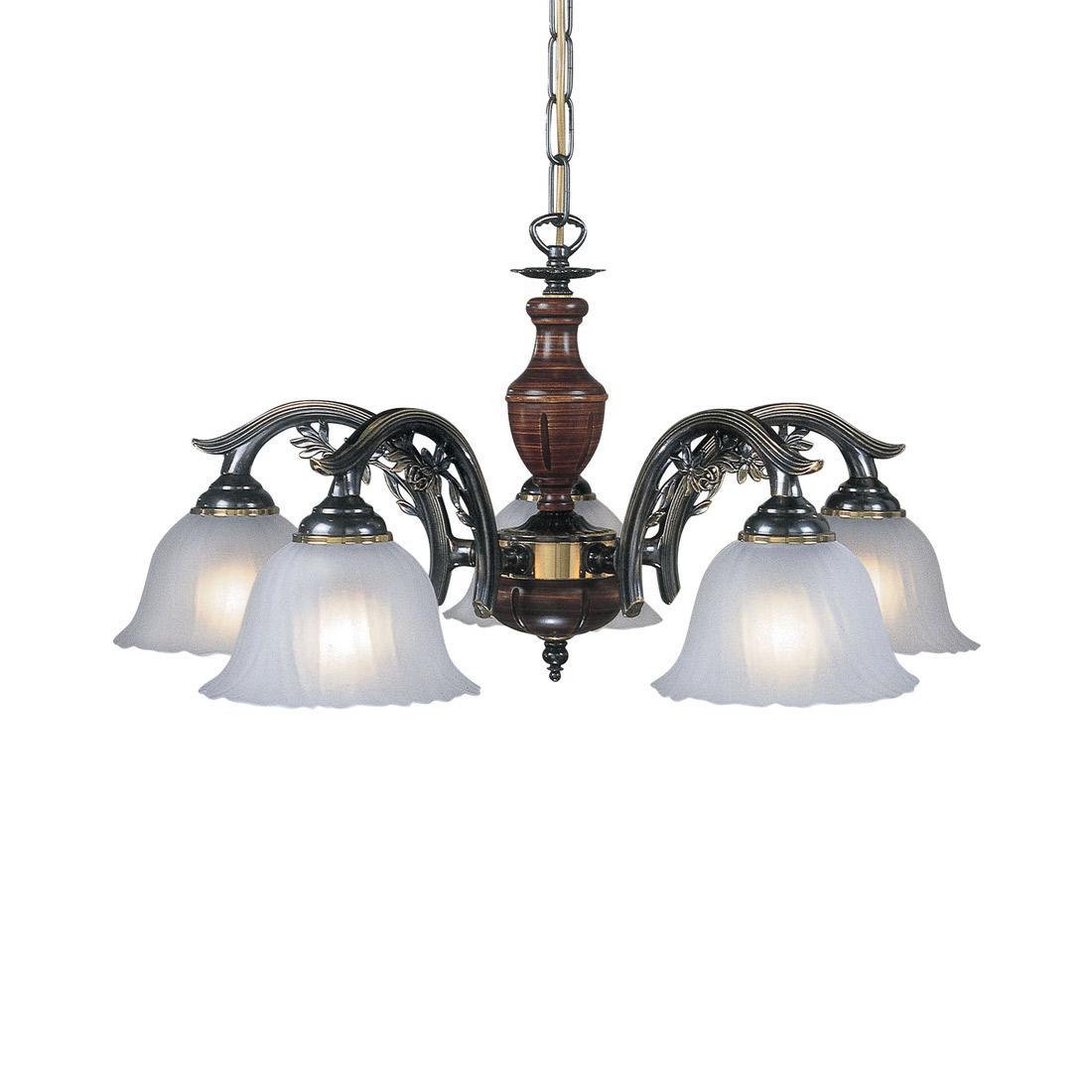 Подвесная люстра Reccagni Angelo L 2700/5 - это изысканное освещение для гостиной в стиле кантри от итальянского бренда Reccagni Angelo. Артикул L 2700/5 из коллекции Bronze 2700 представляет собой элегантное сочетание бронзового основания из латуни и стеклянного плафона в форме флористики.Эта подвесная люстра имеет пять цоколей E27, предназначенных для установки светодиодных ламп мощностью до 60 Вт каждая. Общая мощность освещения составляет 300 Вт, что обеспечивает достаточное освещение помещения. Диаметр плафона составляет 600 мм, а высота - 280 мм, что делает эту люстру идеальным выбором для помещений с высокими потолками.