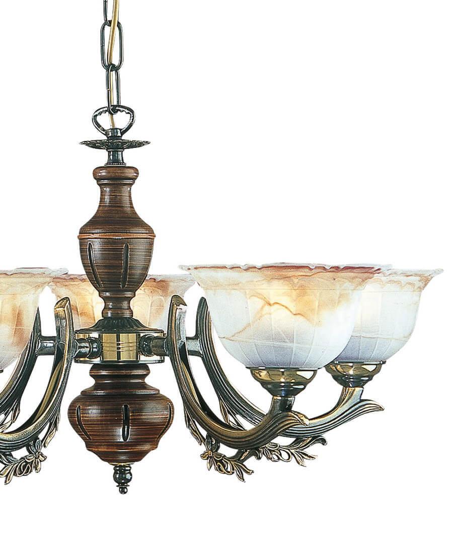 Подвесная люстра Reccagni Angelo L 2801/5 - это изысканное итальянское изделие из коллекции Bronze 2801, предназначенное для использования в гостиной. Она отличается стильным дизайном в кантри стиле, который придаст вашему интерьеру особый шарм.Люстра оснащена пятью лампами с цоколем E27 и общей мощностью 300 Вт, что обеспечивает достаточное освещение помещения. Плафон изготовлен из стекла бежевого цвета с белым абажуром в форме флористики, что придает ему изысканный вид. Основание выполнено из латуни в бронзовом цвете, что придает люстре дополнительную изысканность.