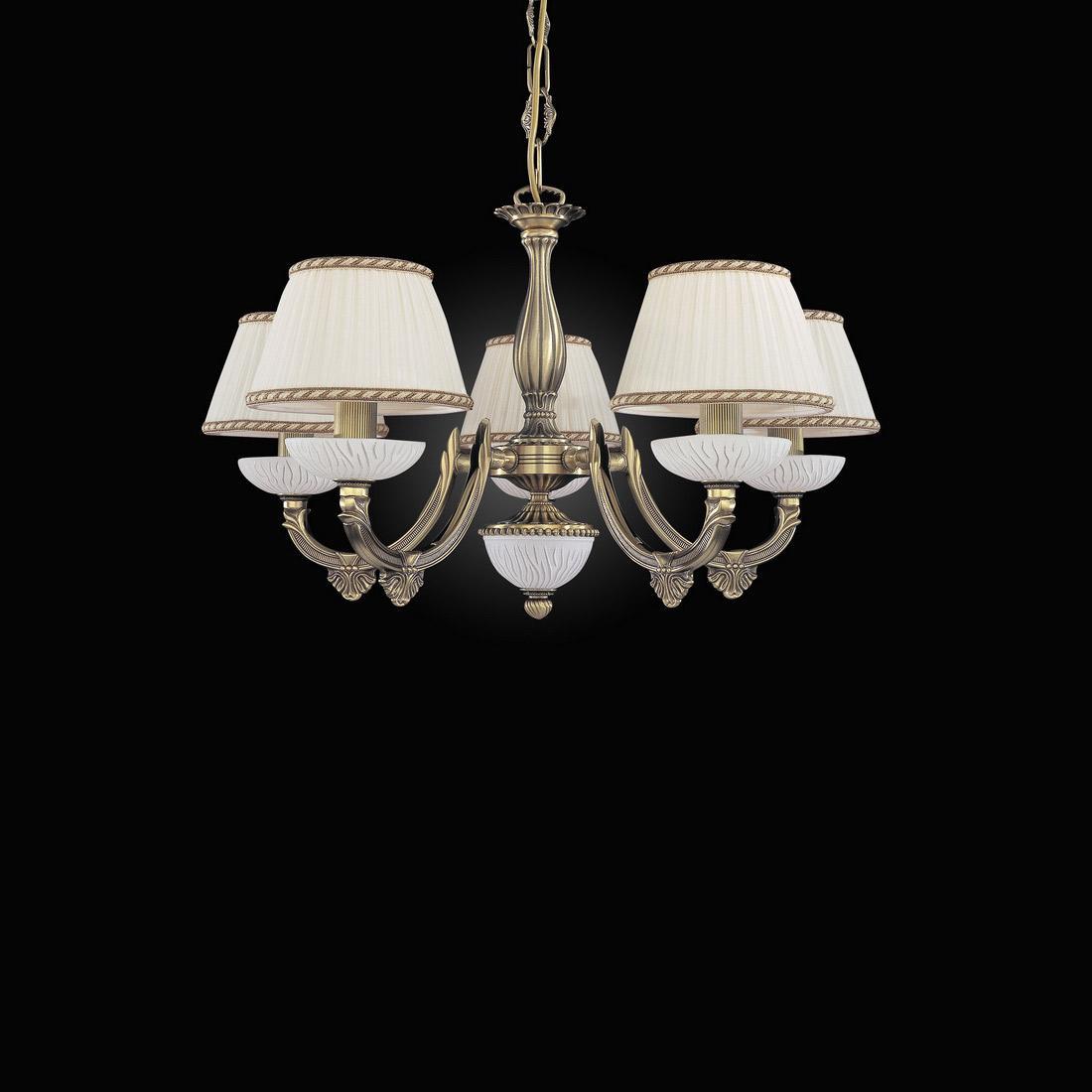 Подвесная люстра Reccagni Angelo L 5400/5 - это изысканное освещение для гостиной в классическом стиле от итальянского бренда Reccagni Angelo. Артикул L 5400/5 из коллекции silver 5400 представляет собой элегантную люстру с пятью лампами мощностью 60 Вт каждая.Высота подвесной люстры составляет 400 мм, диаметр - 600 мм. Плафон и абажур изготовлены из стекла белого цвета, что придает освещению мягкость и уют. Основание выполнено из латуни в античной бронзовой отделке, что придает изделию изысканный вид.
