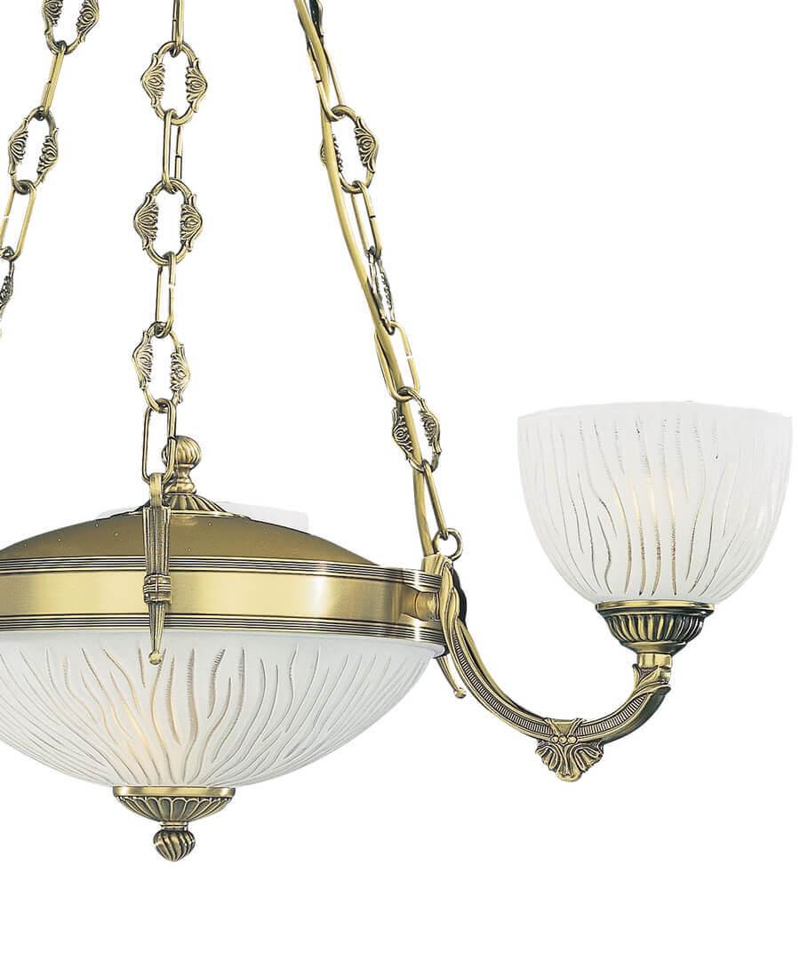Подвесная люстра Reccagni Angelo L.5600/3+2 - это изысканное освещение для гостиной в классическом стиле от итальянского бренда Reccagni Angelo. Артикул L.5600/3+2 из коллекции silver 5600 представляет собой элегантную люстру с пятью лампами мощностью 60 Вт каждая.Высота подвесной люстры составляет 400 мм, диаметр - 600 мм. Плафон и абажур изготовлены из стекла белого цвета, что придает освещению мягкий и приятный оттенок. Основание выполнено из латуни в античной бронзовой отделке, что придает люстре изысканный вид.