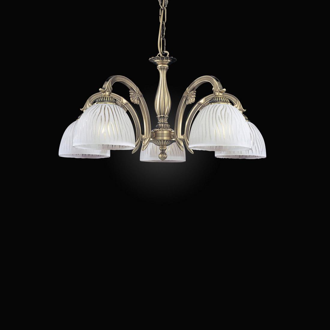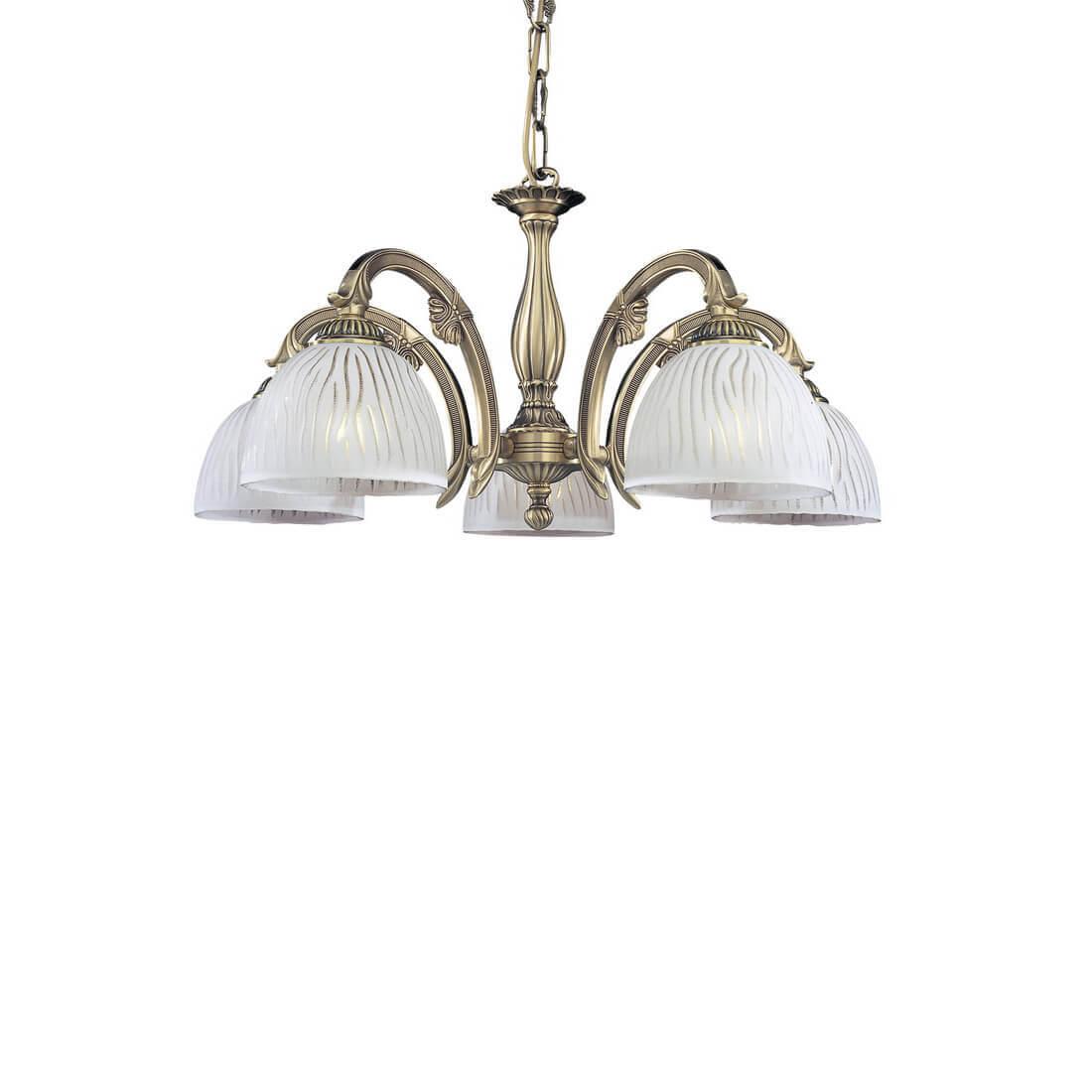 Подвесная люстра Reccagni Angelo L 5650/5 - это изысканное освещение для гостиной в классическом стиле от итальянского бренда Reccagni Angelo. Артикул L 5650/5 из коллекции silver 5650 представляет собой элегантную подвесную люстру с пятью лампами мощностью 60 Вт каждая.Высота данной люстры составляет 320 мм, диаметр - 600 мм. Плафон и абажур изготовлены из стекла белого цвета, что придает освещению мягкость и уют. Основание выполнено из латуни в античной бронзовой отделке, что придает изделию изысканный вид.