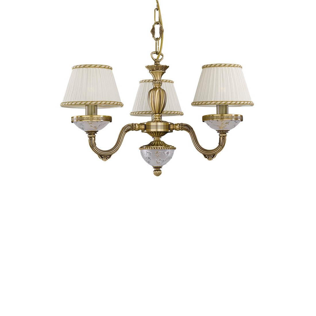 Подвесная люстра Reccagni Angelo L 6402/3 - это изысканное освещение для спальни, выполненное в классическом стиле итальянского бренда Reccagni Angelo. Люстра из коллекции blue 6402 имеет три плафона из матового стекла, создающих мягкий и равномерный свет.Высота подвесной люстры составляет 340 мм, диаметр - 520 мм. Основание изготовлено из латуни в античной бронзовой отделке, что придает изделию изысканный вид. Цвет плафона - белый, что позволяет лучу света проникать сквозь него и создавать уютную атмосферу в комнате.