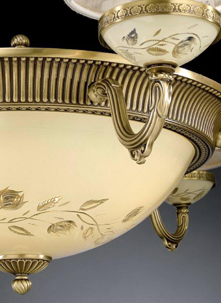 Подвесная люстра Reccagni Angelo L.6422/6+4 - это изысканное итальянское изделие из коллекции blue 6422, которое станет прекрасным дополнением к интерьеру гостиной в классическом стиле.Эта люстра имеет десять плафонов из стекла светло-желтого цвета, выполненных в форме конусов. Основание из латуни в античной бронзе придает изделию изысканный вид. Диаметр люстры составляет 880 мм, а высота - 700 мм.