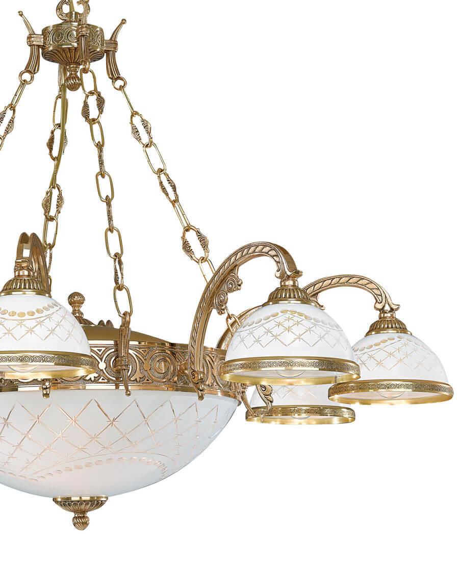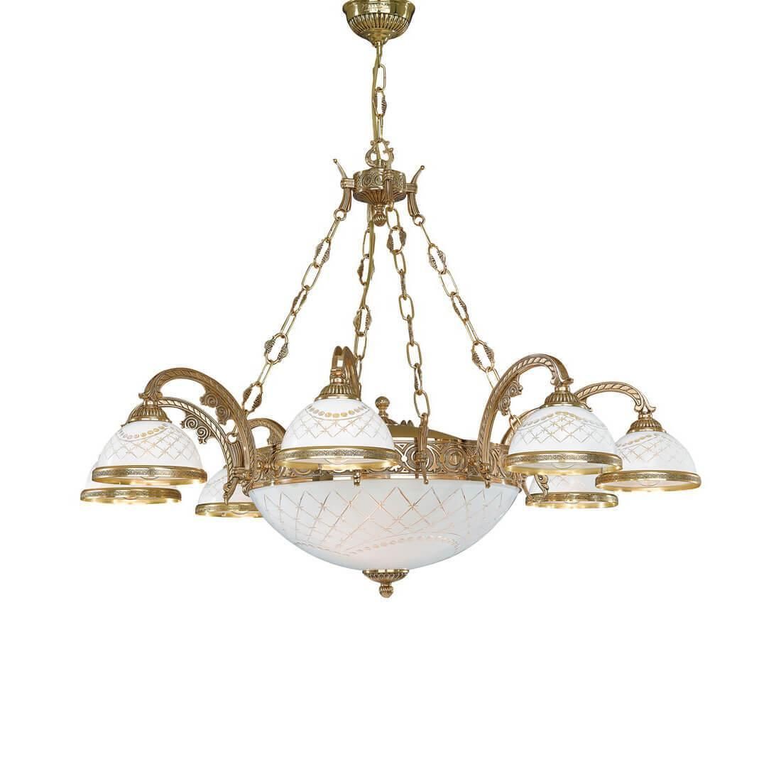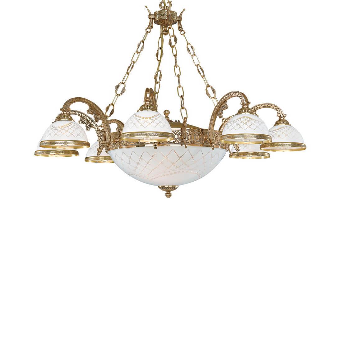 Подвесная люстра Reccagni Angelo L.7102/8+3 - это изысканное освещение для гостиной в классическом стиле от итальянского бренда Reccagni Angelo. Артикул L.7102/8+3 из коллекции rosa 7102 представляет собой элегантную и функциональную люстру, которая станет украшением любого интерьера.Высота подвесной люстры составляет 700 мм, диаметр - 950 мм. Основание изготовлено из латуни в золотистом цвете, а плафон выполнен из стекла белого цвета. Всего в подвесной люстре 11 лампочек с цоколем E27 и мощностью 60 Вт каждая, общая мощность составляет 660 Вт.