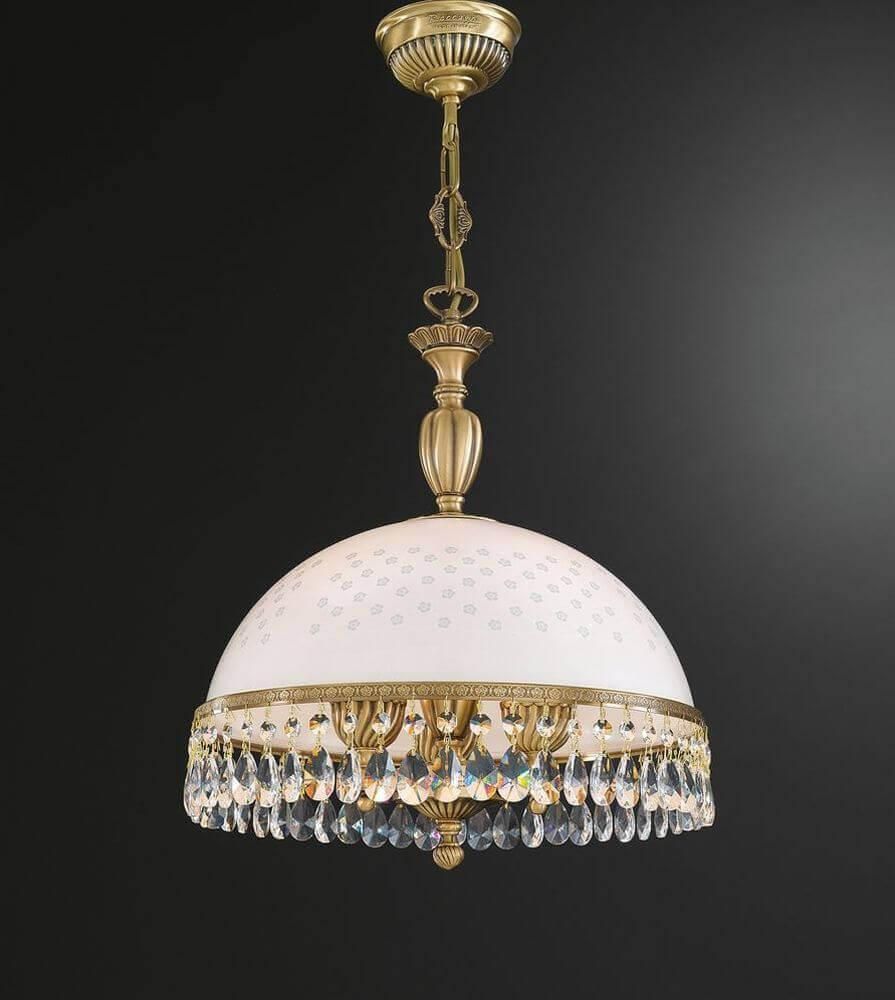 Подвесная люстра Reccagni Angelo L 8201/38 - это изысканное освещение для спальни, выполненное в классическом стиле итальянского бренда Reccagni Angelo. Артикул L 8201/38 из коллекции rosa 8201 представляет собой элегантную подвесную люстру с тремя лампами мощностью по 60 Вт каждая.Высота подвесной люстры составляет 460 мм, диаметр плафона - 380 мм. Материал плафона и абажура - стекло белого цвета, форма плафона - полукруглая. Основание выполнено из латуни в античной бронзовой отделке.