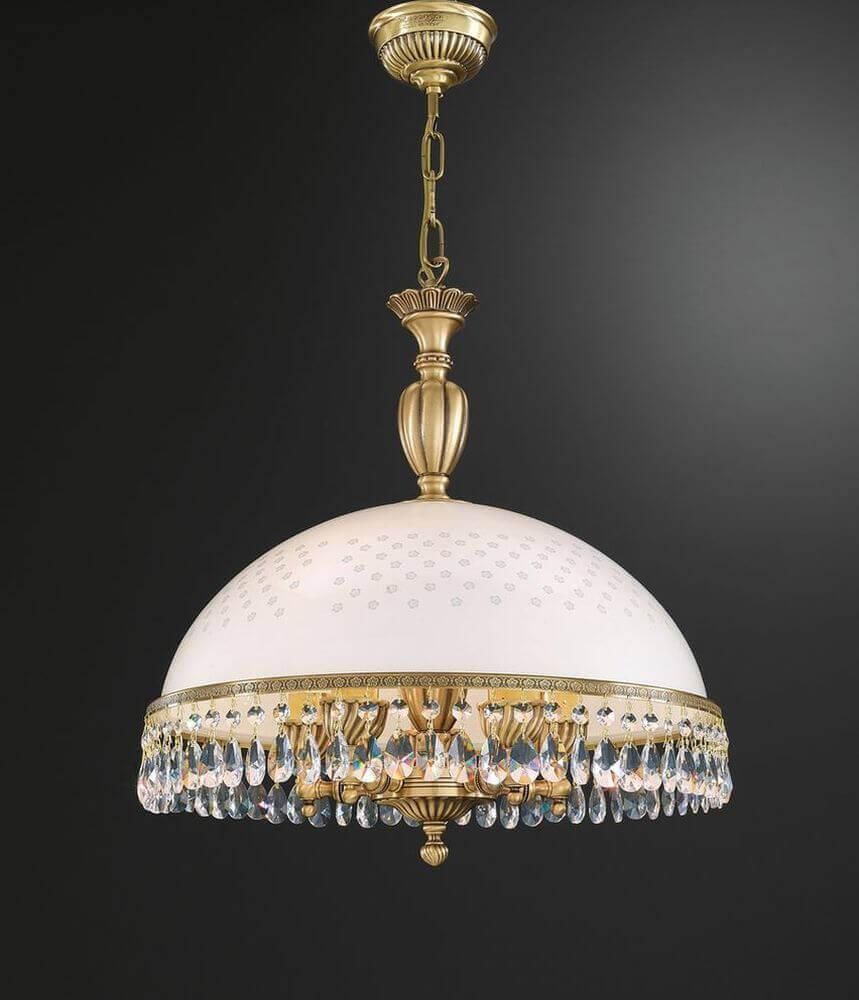 Подвесная люстра Reccagni Angelo L 8201/48 - это изысканное освещение для спальни, выполненное в классическом стиле итальянского бренда Reccagni Angelo. Артикул L 8201/48 из коллекции rosa 8201 представляет собой элегантную подвесную люстру с пятью лампами накаливания мощностью 60 Вт каждая.Высота подвесной люстры составляет 560 мм, диаметр плафона - 480 мм. Материал плафона и абажура - стекло, цвет белый. Основание выполнено из латуни в античной бронзовой отделке. Плафон имеет форму полукруга, что придает ему изысканный вид.