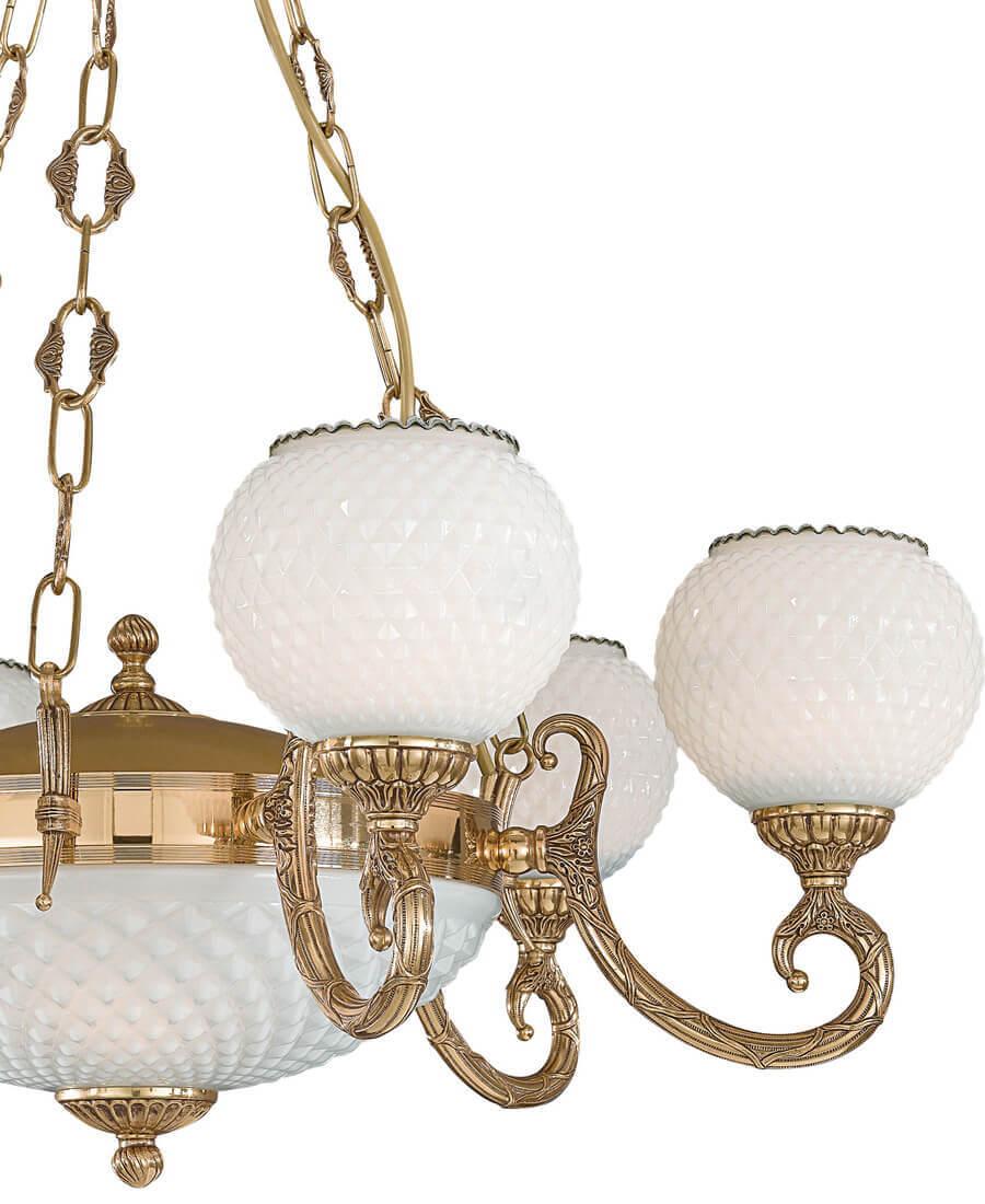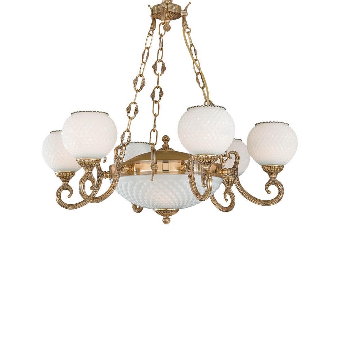 Подвесная люстра Reccagni Angelo L.8550/6+2 - это изысканное освещение для гостиной, выполненное в классическом стиле итальянского бренда Reccagni Angelo. Артикул L.8550/6+2 относится к коллекции rosa 8550 и имеет высокое качество исполнения.Люстра имеет восемь плафонов из стекла, окрашенного в белый цвет, что придает ей элегантный и изысканный вид. Основание из латуни выполнено в золотистом цвете, что добавляет изделию роскоши и изыска.