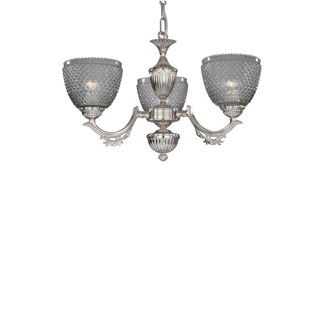 Подвесная люстра Reccagni Angelo L.9851/3 - это изысканное освещение для спальни, которое добавит шарма и элегантности в интерьер комнаты. Произведенная в Италии, данная люстра отличается высоким качеством материалов и изысканным дизайном.Люстра имеет классический стиль, что делает ее универсальным решением для различных интерьеров. Основание из металла с никелевым покрытием обеспечивает надежность и долговечность конструкции. Плафон из стекла в дымчатом цвете придает освещению мягкий и приятный оттенок.