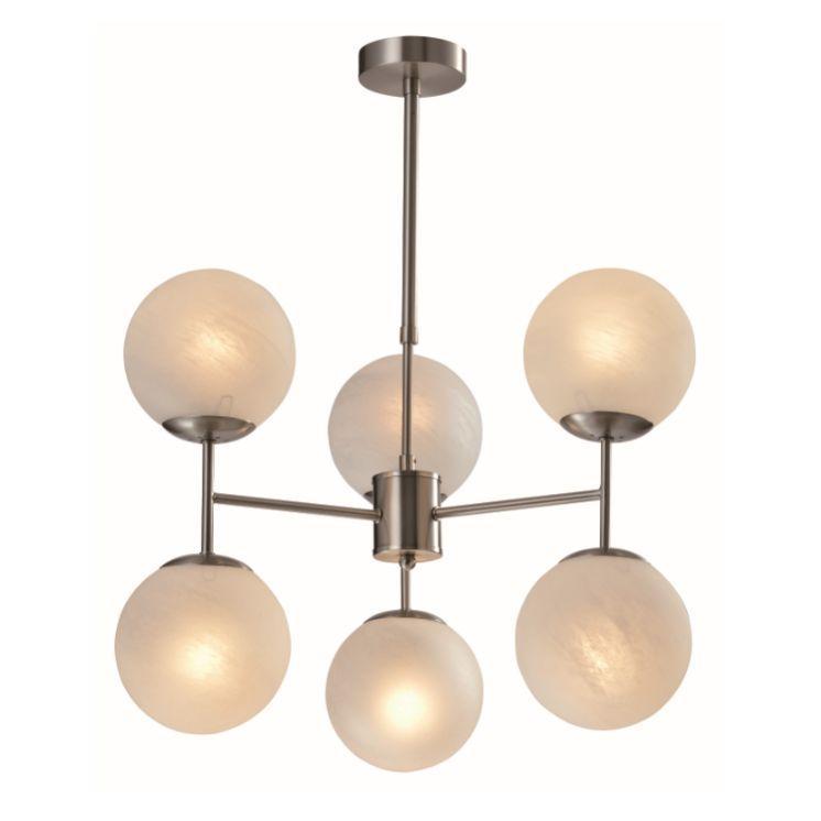Подвесная люстра Rivoli Agata 3071-306 Б0047301 - это изысканное освещение для гостиной, выполненное в стиле лофт. Произведена в Италии, она отличается высоким качеством материалов и изысканным дизайном.Люстра оснащена шестью лампами с цоколем E14 и общей мощностью 240 Вт. Материал плафона и абажура - стекло, что придает освещению особую изящность. Диаметр люстры составляет 520 мм, а высота - 700 мм. Основание изготовлено из металла и окрашено в никель.