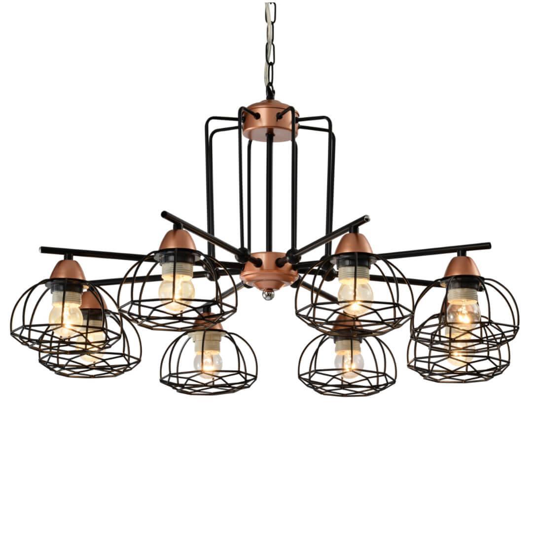 Подвесная люстра Rivoli Gekuba 5064-208 Б0047373 - это изысканное освещение для гостиной в стиле лофт. Произведена в Италии брендом Rivoli, она сочетает в себе элегантность и функциональность.Эта люстра имеет 8 цоколей под светодиодные лампы с мощностью 40 Вт каждая, общая мощность составляет 320 Вт. Высота подвеса составляет 800 мм, диаметр плафона - 730 мм. Материал плафона и основания - металл, цвет плафона черный, цвет основания - медный.