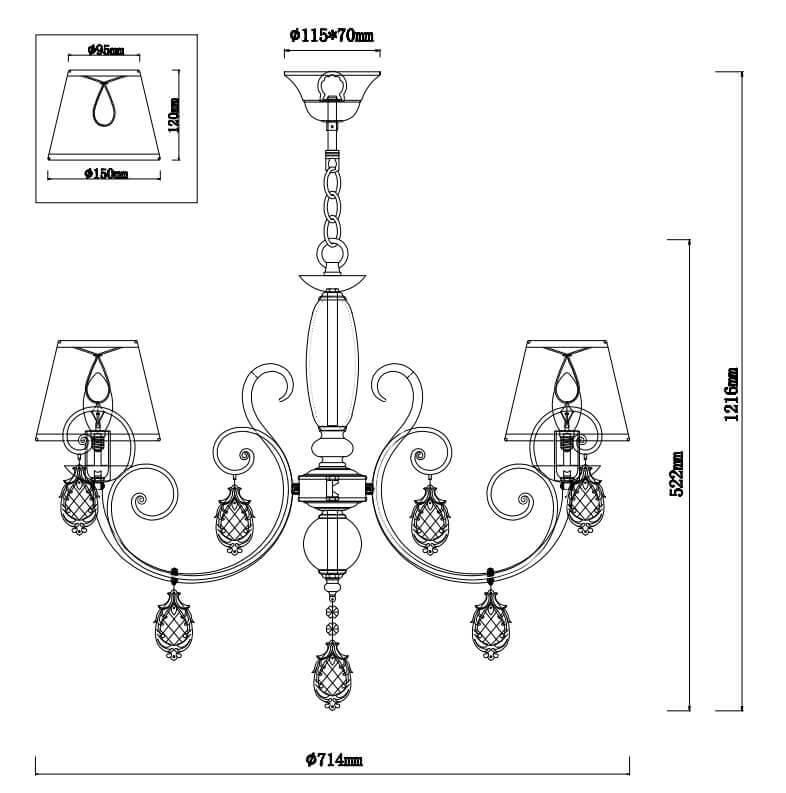 Подвесная люстра Rivoli Molto 2010-206 Б0038390 - это изысканное освещение для гостиной в классическом стиле от итальянского бренда Rivoli. Люстра из коллекции Molto имеет шесть плафонов из органзы в бронзовом цвете, которые создают уютную и теплую атмосферу в помещении.Высота подвесной люстры составляет 522 мм, диаметр - 714 мм. Основание изготовлено из металла в бронзовом цвете, что придает изделию элегантный вид. Лампочки с цоколем E14 и мощностью 40 Вт обеспечивают яркое освещение с общей мощностью 240 Вт.