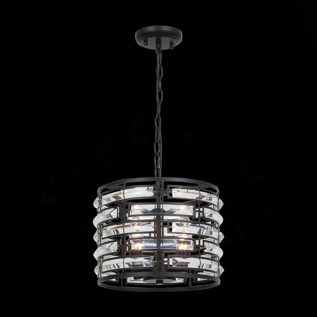 Плафон и абажур изготовлены из хрусталя, что придает люстре изысканный и благородный вид. Цвет плафона прозрачный, а основание выполнено из черного металла. Диаметр плафона составляет 295 мм, а высота - 233 мм.