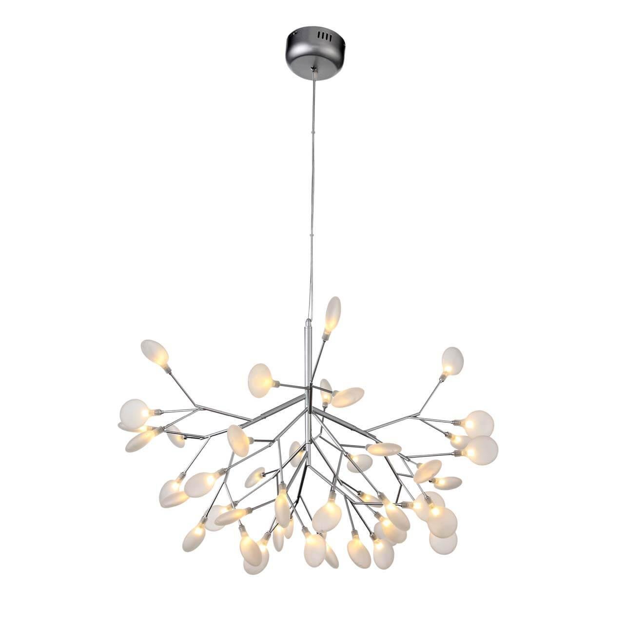 Плафон и абажур выполнены из стекла белого цвета, что придает люстре изысканный и изящный вид. Основание из металла в серебристом цвете надежно держит конструкцию и придает ей дополнительную прочность.