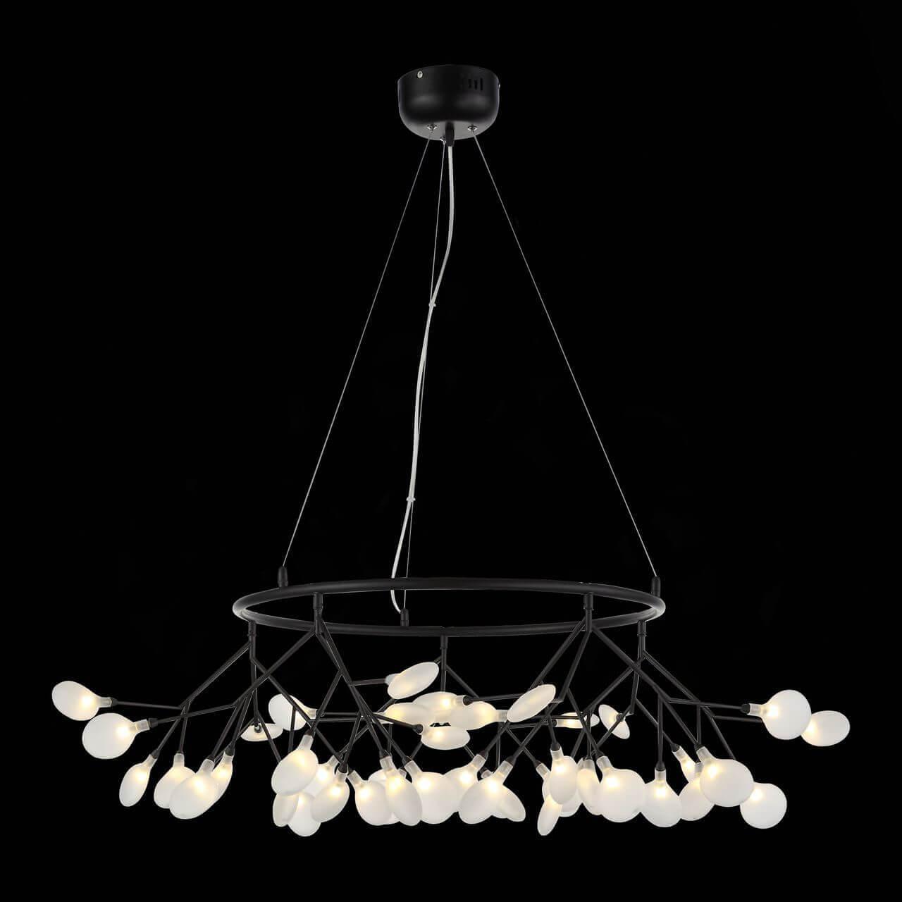 Подвесная люстра ST Luce Riccardo SL411.453.45 - это изысканное освещение для гостиной, которое привносит в интерьер нотки флористики и роскоши. Произведенная в Италии, данная люстра отличается высоким качеством материалов и изысканным дизайном.Люстра имеет овальный плафон из стекла белого цвета, который прекрасно сочетается с черным металлическим основанием. Стеклянные элементы создают игру света и тени, придавая помещению особую атмосферу уюта и элегантности.