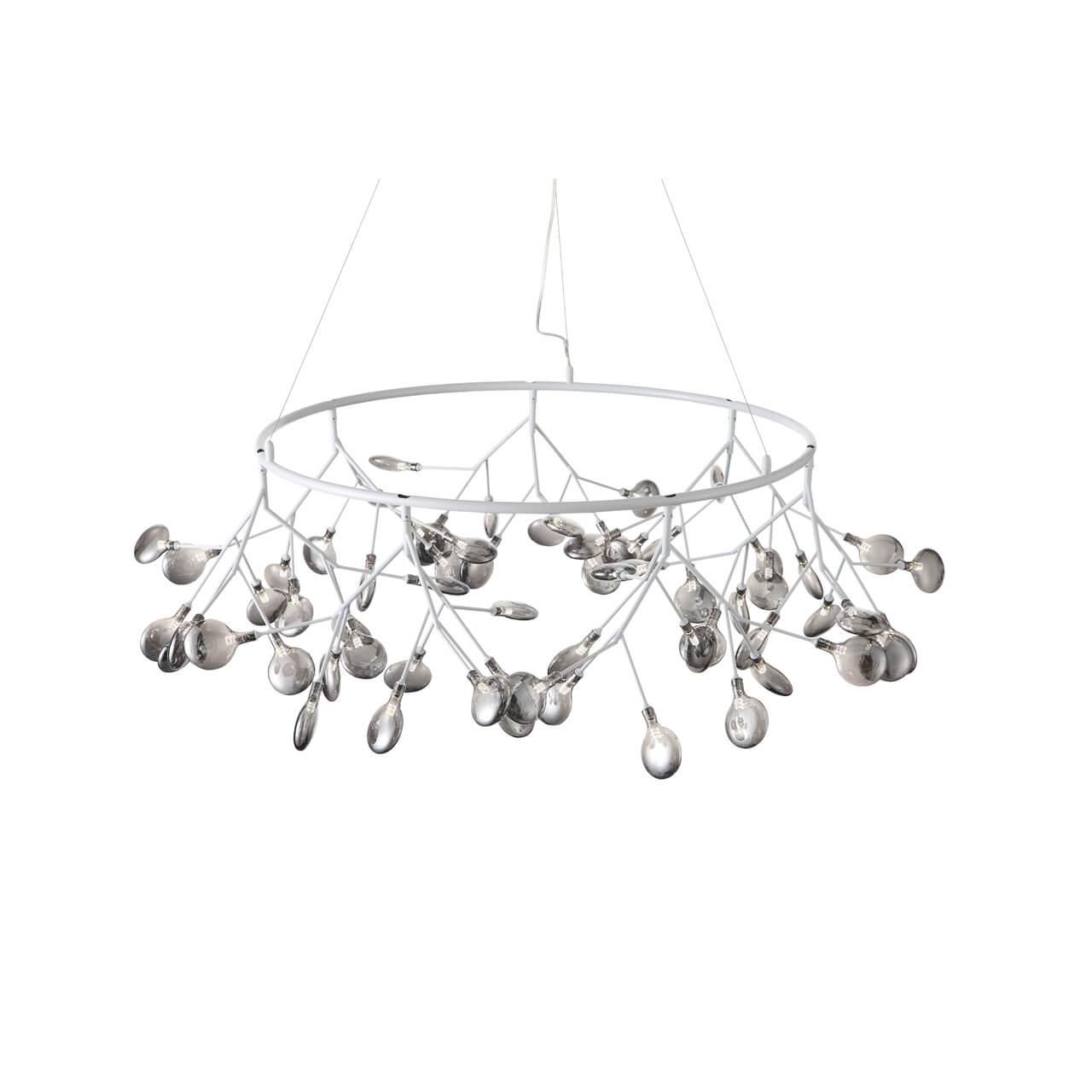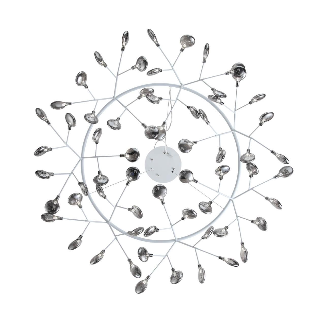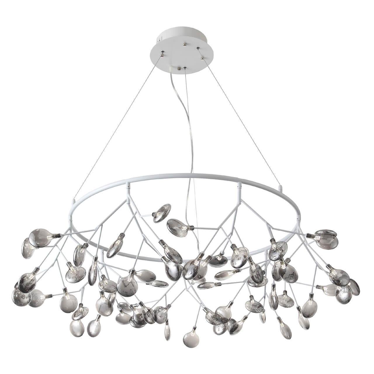 Плафон и абажур изготовлены из стекла в дымчатом цвете, что создает приятный и мягкий свет. Диаметр плафона составляет 1350 мм, а высота - 380 мм. Основание выполнено из металла в белом цвете, что придает люстре легкость и изящность.