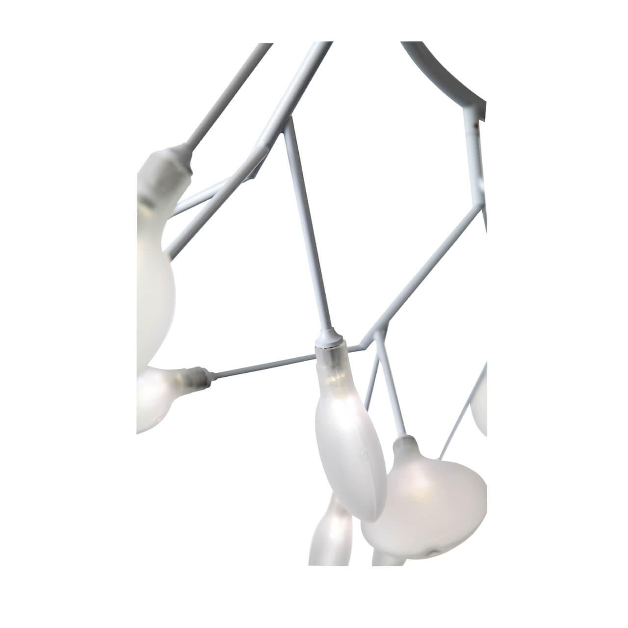 Плафон и абажур изготовлены из прочного стекла, а основание выполнено из металла, окрашенного в белый цвет. Благодаря классической форме и цветовой гамме, данная люстра легко сочетается с различными стилями интерьера.