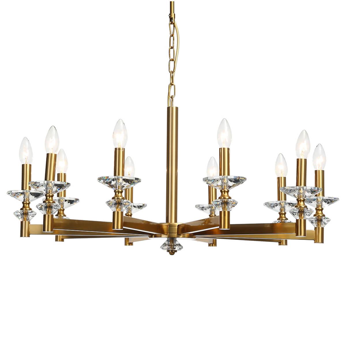 Подвесная люстра Stilfort Albert 1048/03/10P - это изысканное освещение для гостиной, которое добавит шарма и элегантности в интерьер помещения. Произведенная в Германии, данная люстра отличается высоким качеством материалов и изысканным дизайном.Этот светильник из коллекции Albert выполнен в классическом стиле, что делает его универсальным и подходящим для различных интерьеров. Структура основания из металла покрыта золотистым оттенком, что придает изделию роскошный вид.