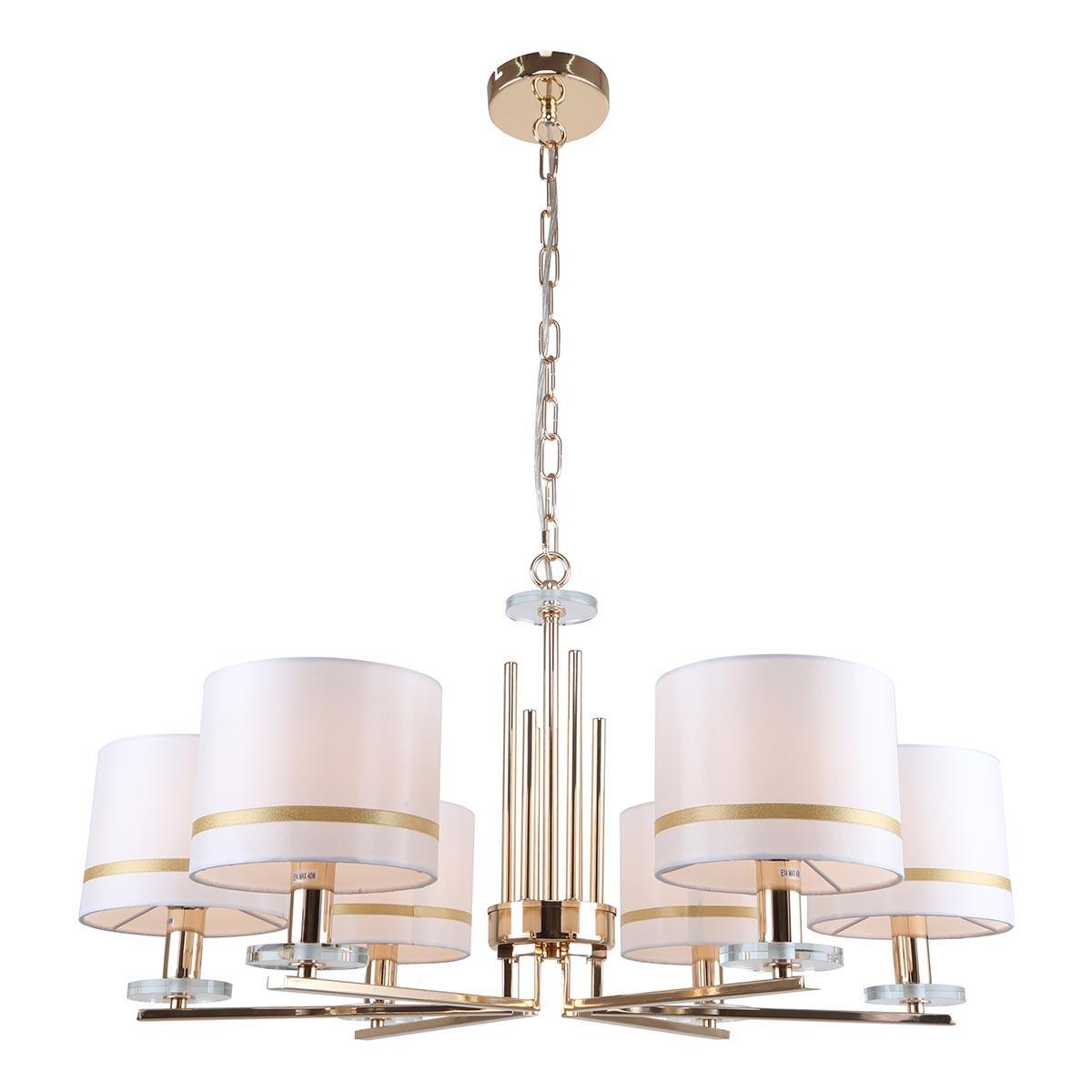 Подвесная люстра Stilfort Chart 1045/03/06P - это элегантное и стильное освещение для спальни, которое добавит изысканности и уюта в интерьер комнаты.Эта подвесная люстра из коллекции Chart от известного бренда Stilfort имеет шесть цилиндрических плафонов из ткани, окрашенных в белый цвет. Основание выполнено из металла с золотистым оттенком, что придает изделию изысканный вид. Диаметр люстры составляет 730 мм, а высота - 350 мм.