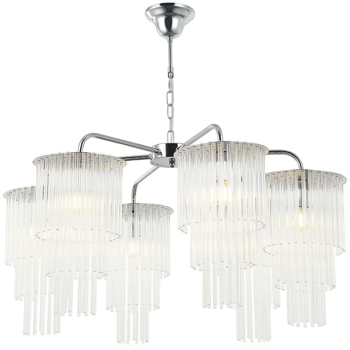 Стильный дизайн в сочетании с прозрачным стеклянным плафоном и хромированным основанием придадут вашему интерьеру изысканности и современности. Цвет плафона и абажура - прозрачный, а цвет основания - хром. Форма плафона - цилиндр, что придает люстре особый шарм и изысканность.