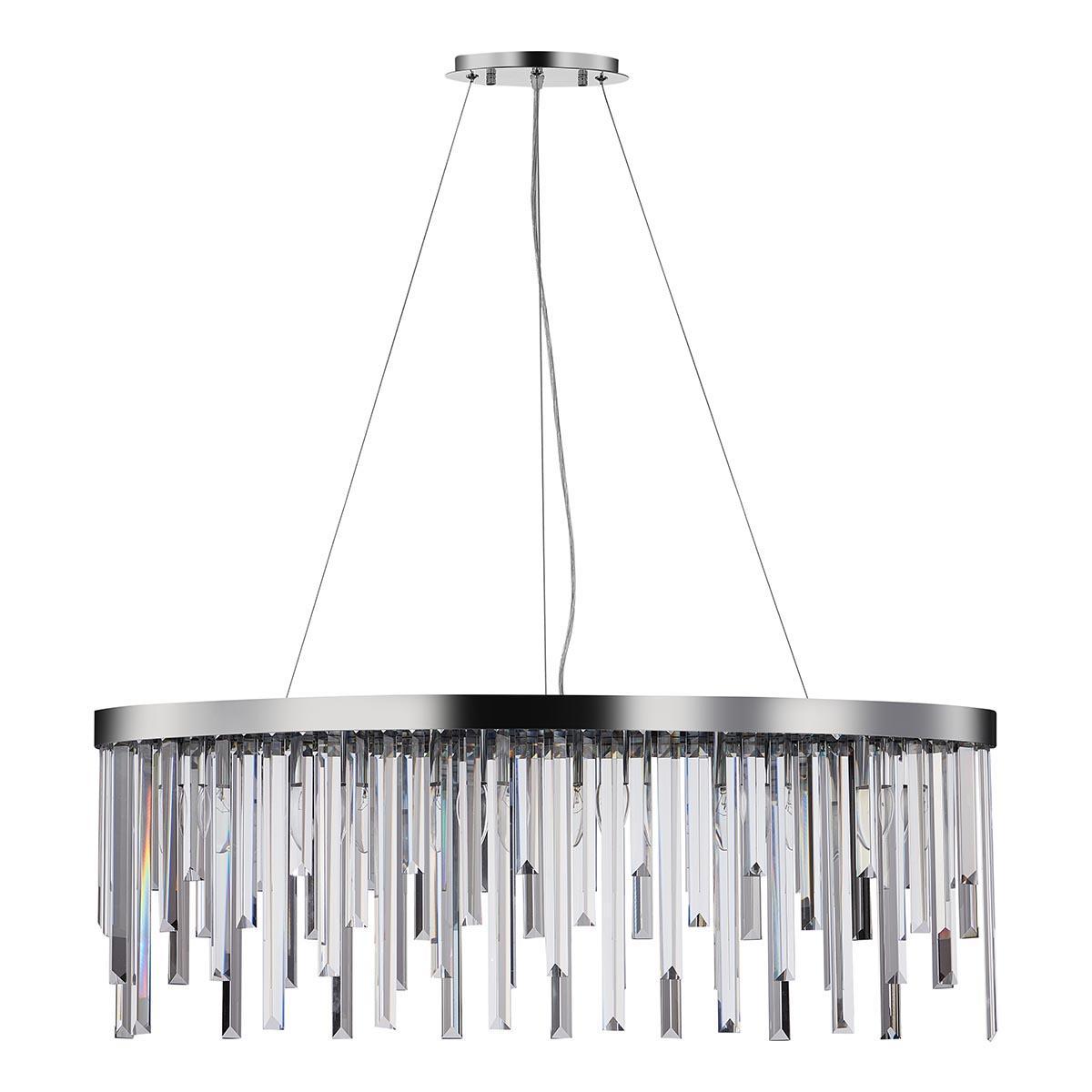 Цвет плафона и абажура - прозрачный, что позволяет свету равномерно распределяться по комнате, создавая уютную атмосферу. Стильное исполнение в виде цилиндрической формы плафона и хромированного основания делает эту люстру идеальным выбором для современного интерьера.