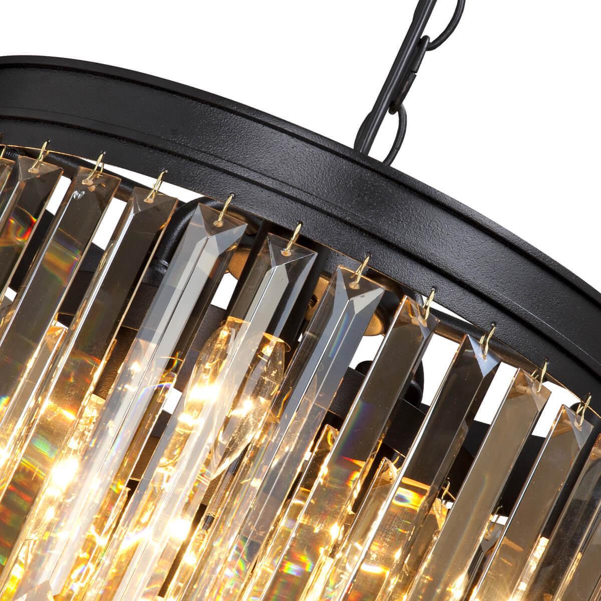 Высота подвесной люстры составляет 990 мм, диаметр - 360 мм. Установка осуществляется на потолок, что позволяет равномерно распределить свет по всему помещению. Степень защиты IP20 гарантирует безопасность использования внутри помещения.