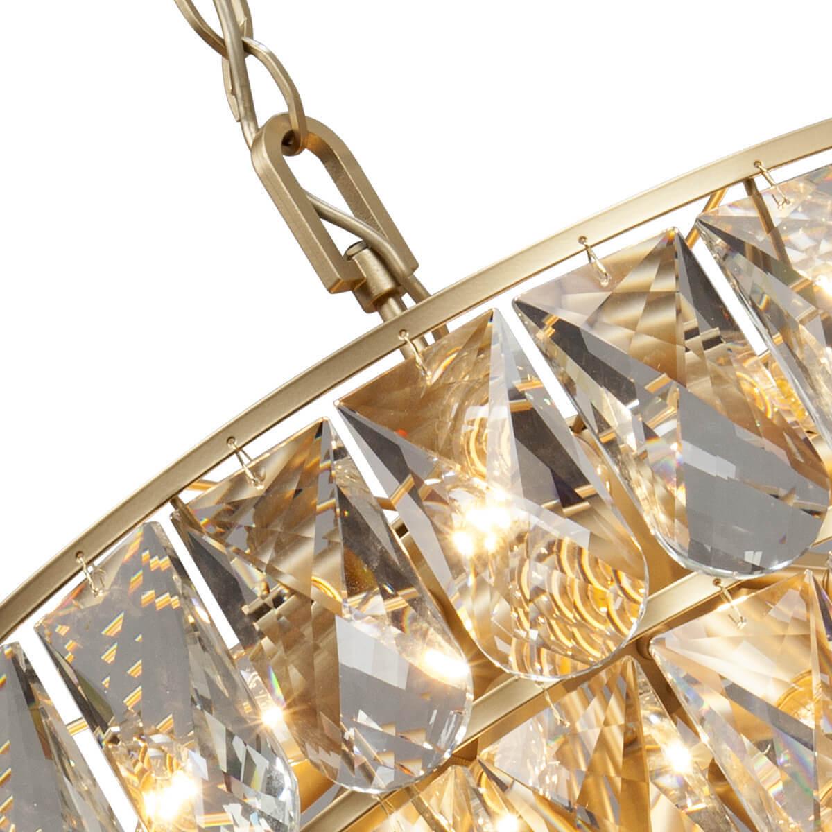 Установка данной люстры на потолок позволит равномерно осветить помещение, создавая уютную атмосферу. Благодаря использованию хрусталя, свет отражается красивыми бликами, придавая интерьеру особый шарм.