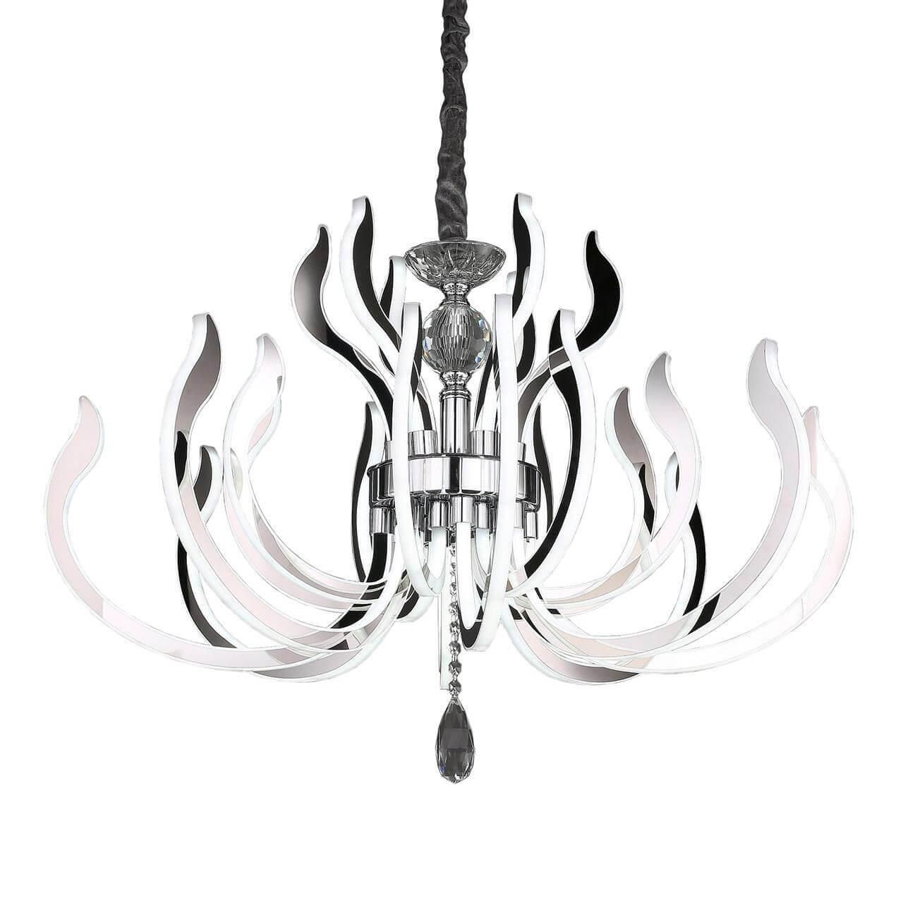 Материал плафона и абажура - полимер, что делает конструкцию легкой и прочной. Цвет хрома придает люстре современный и стильный вид. Основание из металла также выполнено в хромированном цвете.